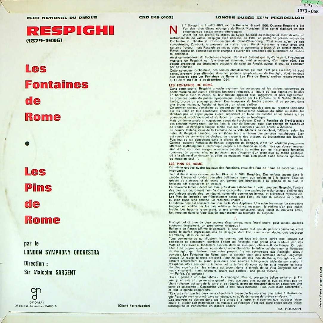 商品コード:1370-058p[CLUB NATIONAL] M.サージェント / レスピーギ:交響詩「ローマの泉」, 交響詩「ローマの松」