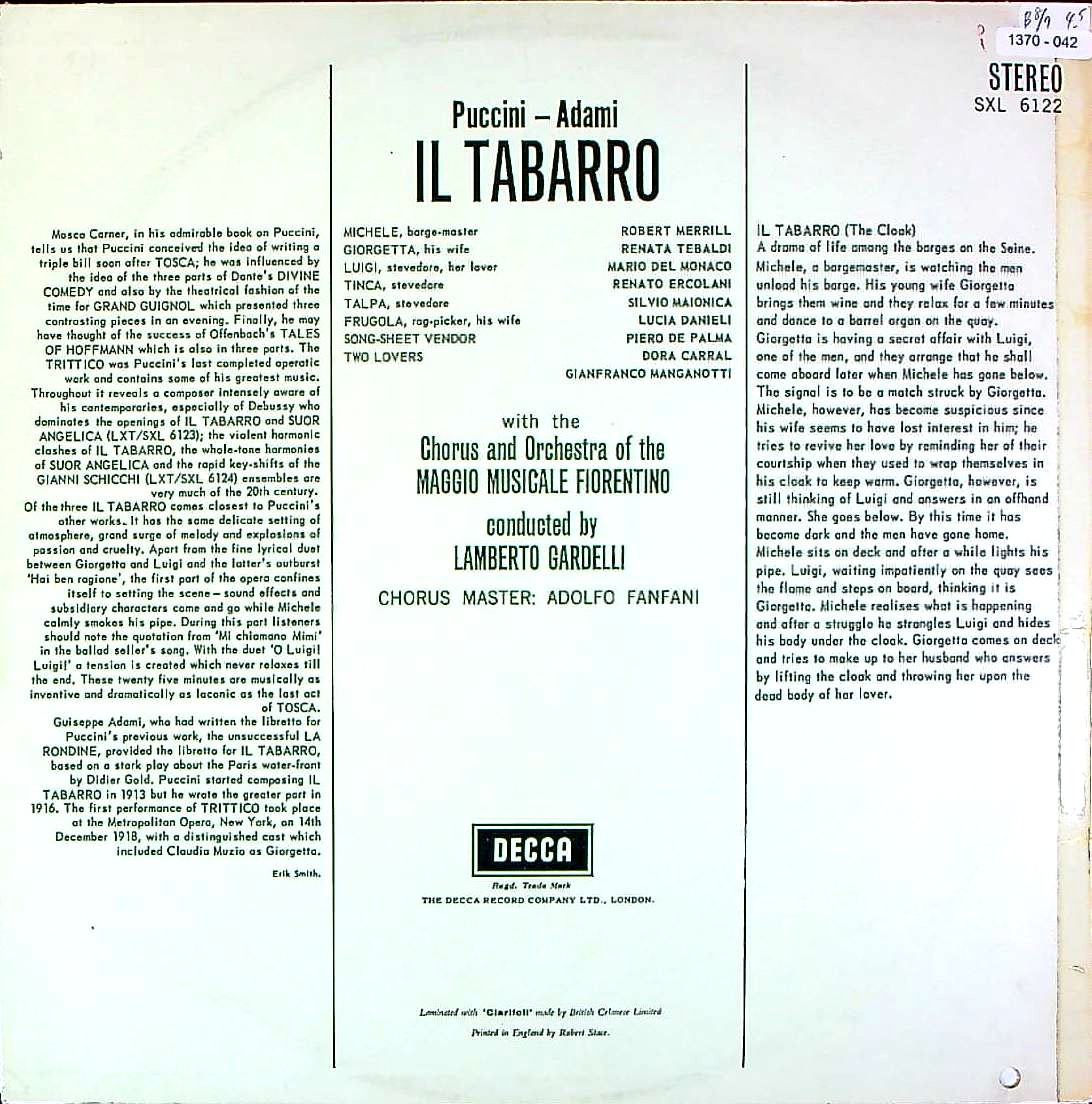 商品コード:1370-042[DECCA] L.ガルデッリ / プッチーニ:歌劇「外套」(全曲)