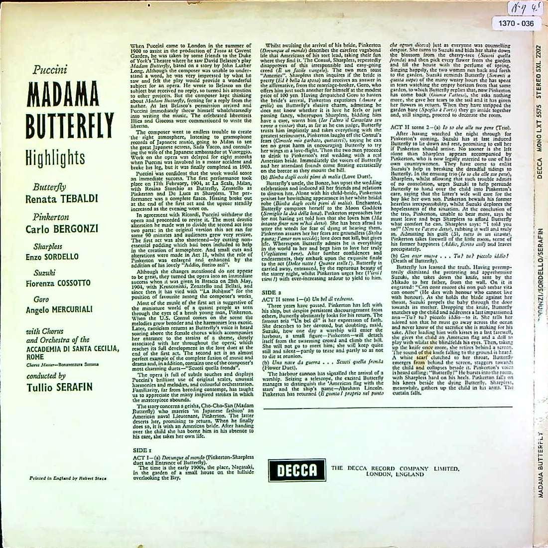 商品コード:1370-036[DECCA] T.セラフィン/ プッチーニ:歌劇「蝶々夫人」(ハイライト)