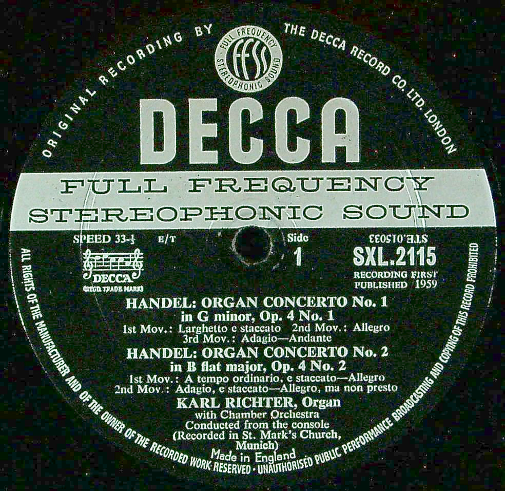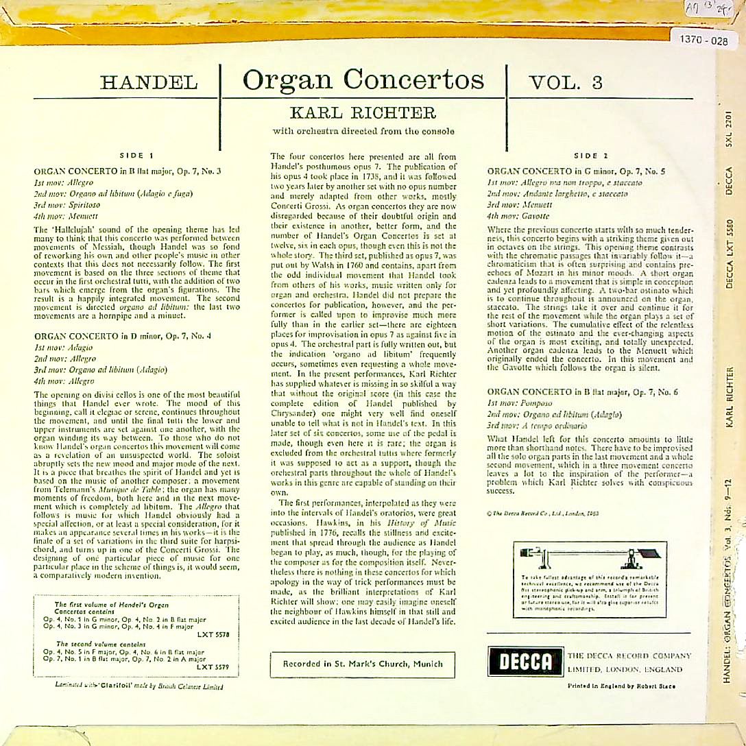 商品コード:1370-028[DECCA] K.リヒター(org)指揮/ ヘンデル:Org協奏曲集(全12曲)/Op.4, Op.7