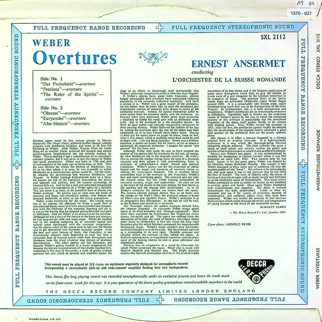 商品コード:1370-027[DECCA] E.アンセルメ/ ウェーバー:序曲集/魔弾の射手, プレチオーザ 他