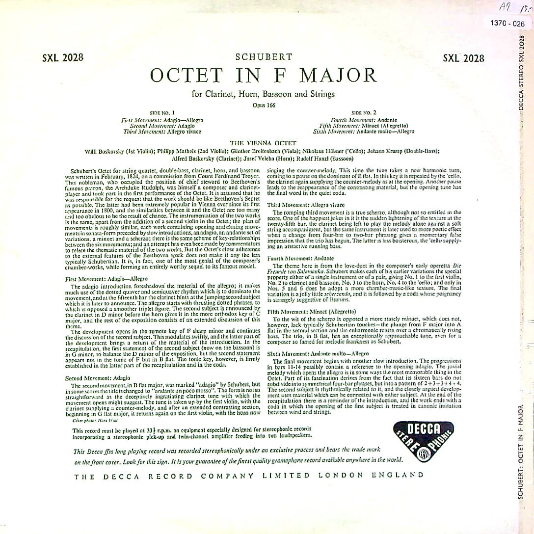 商品コード:1370-026[DECCA] ウィーン八重奏団/ シューベルト:八重奏曲