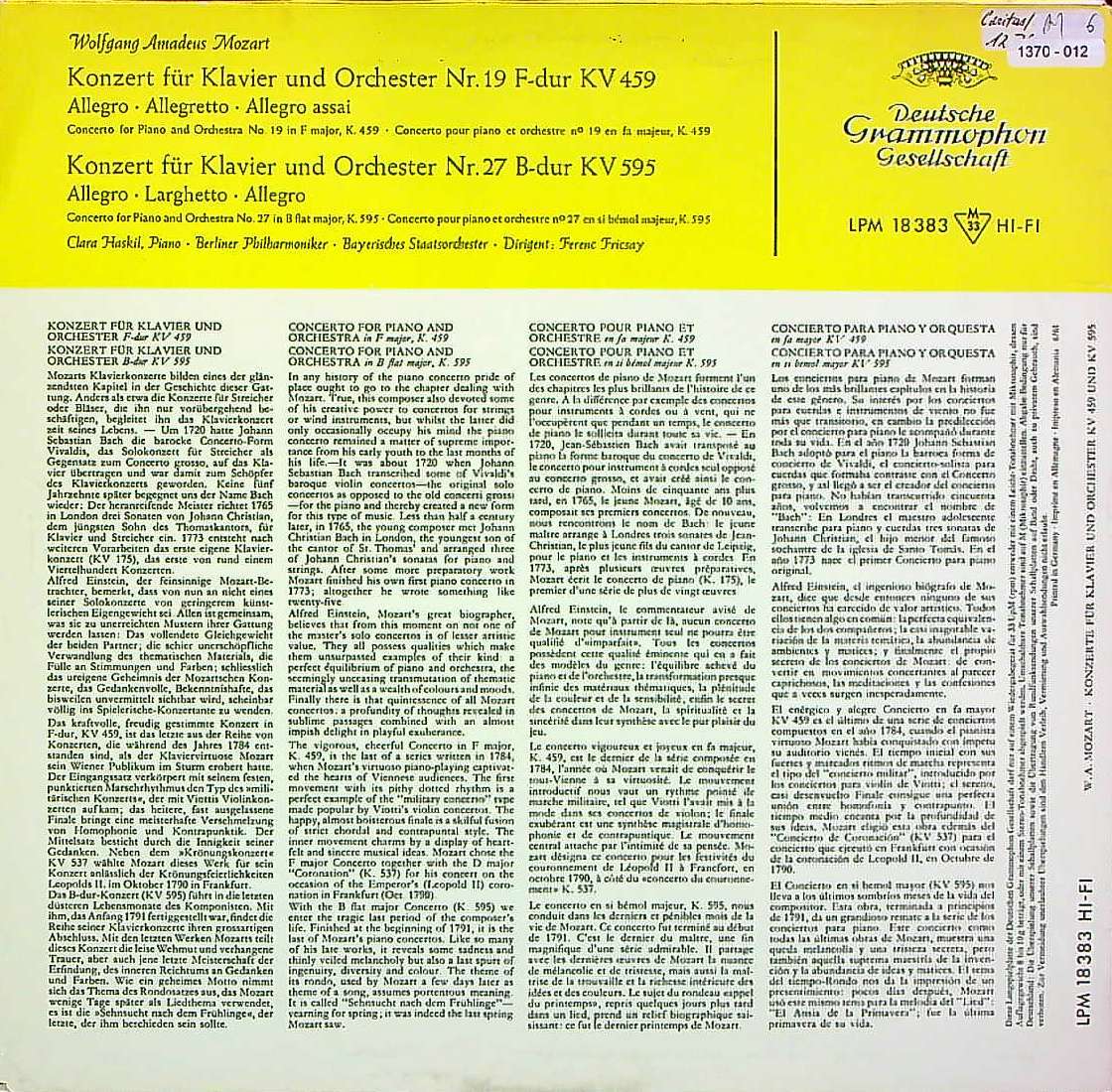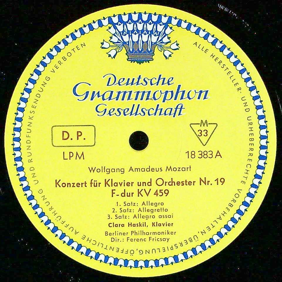 商品コード:1370-012[DGG] C.ハスキル(pf)/ モーツァルト:Pf協奏曲19番K.459, Pf協奏曲27番K.595