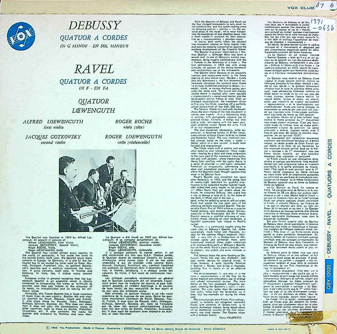 商品コード:1371-063b[VOX] レーヴェングートQt. / ドビュッシー:弦楽四重奏曲, ラヴェル:弦楽四重奏曲