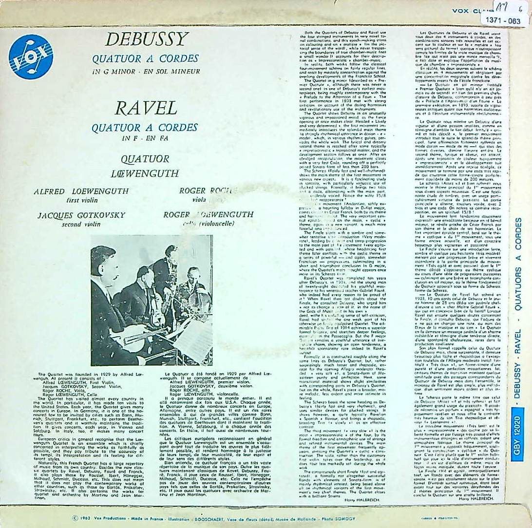 商品コード:1371-063[VOX] レーヴェングートQt. / ドビュッシー:弦楽四重奏曲, ラヴェル:弦楽四重奏曲