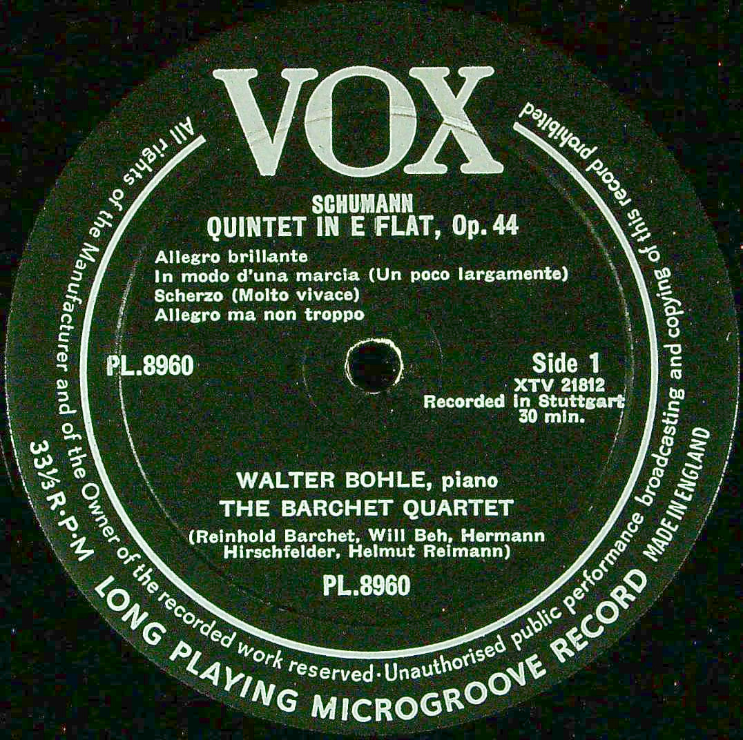 商品コード:1371-062pb[VOX] W.ボーレ(pf) バルヒェットQt. / シューマン:Pf五重奏曲, Pf四重奏曲
