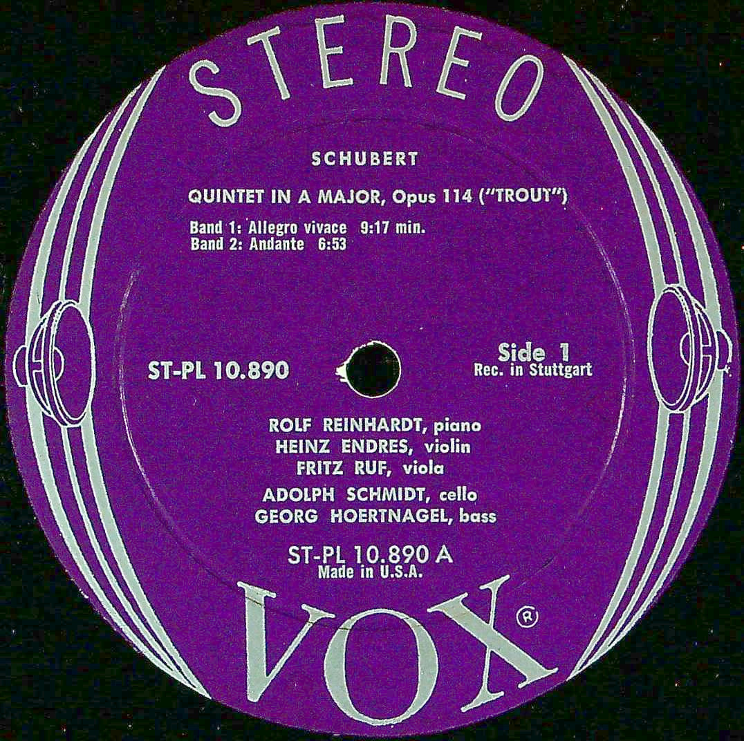 商品コード:1371-061pb[VOX] エンドレスQt.メンバー, R.ラインハルト(pf) 他/ シューベルト:Pf五重奏曲D.667「鱒」