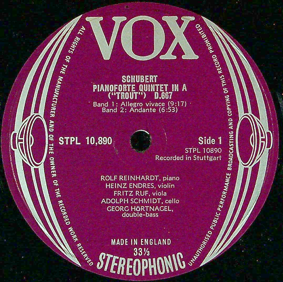 商品コード:1371-061[VOX] エンドレスQt.メンバー, R.ラインハルト(pf) 他/ シューベルト:Pf五重奏曲D.667「鱒」