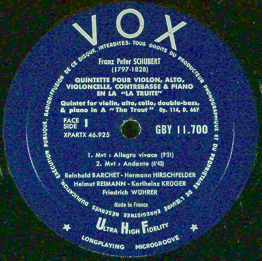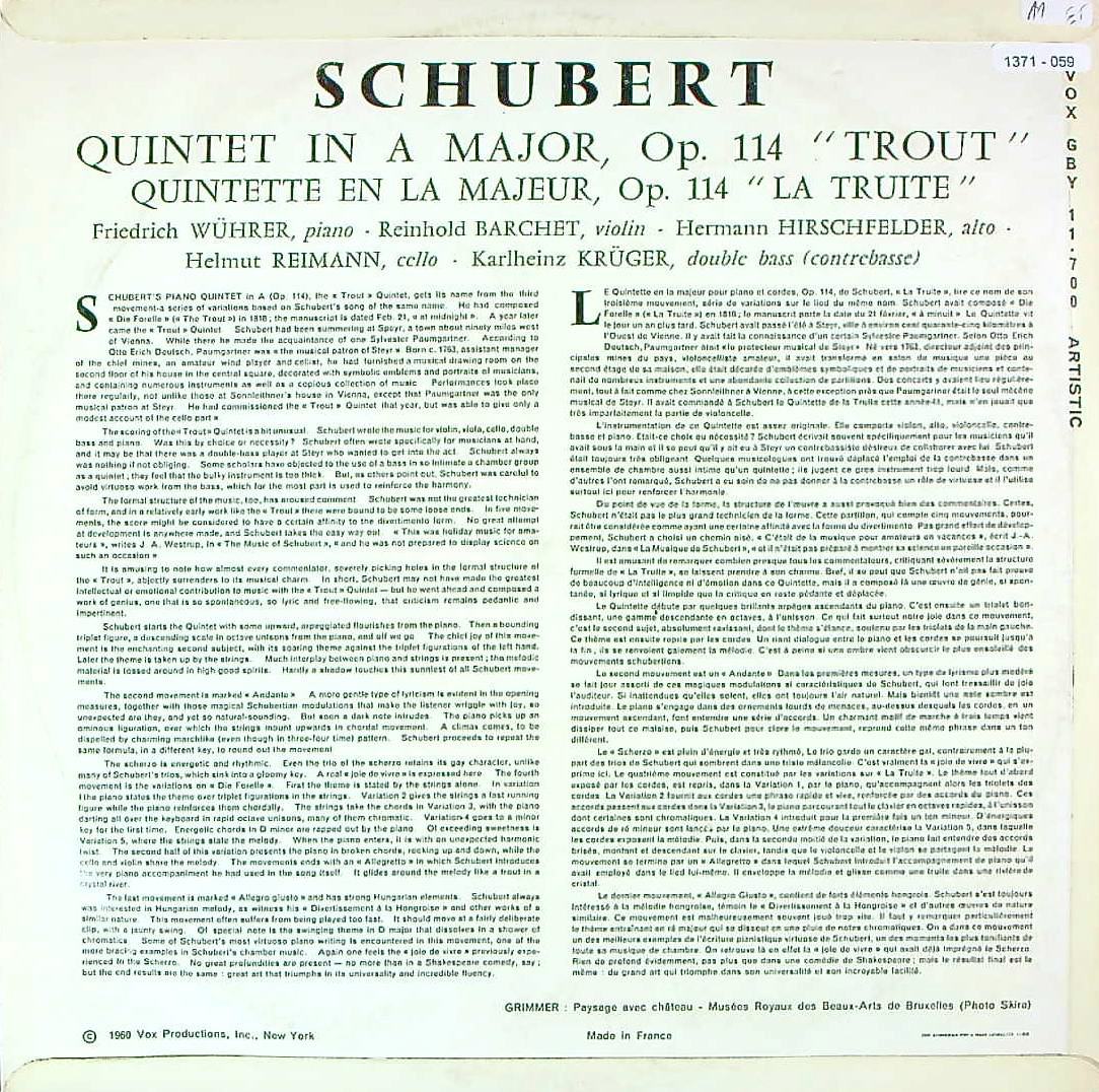 商品コード:1371-059[VOX] F.ヴューラー(pf) バルヒェットQt.メンバー/ シューベルト:Pf五重奏曲「鱒」