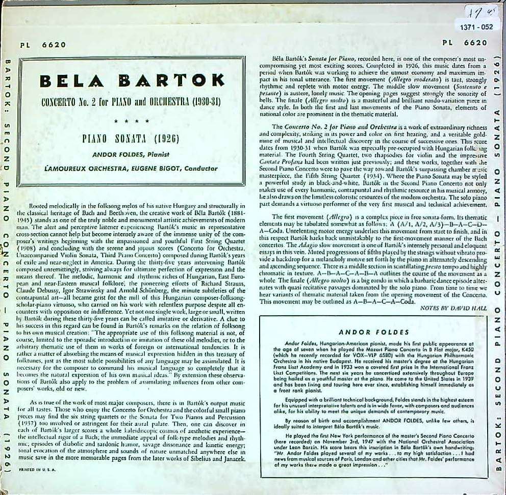 商品コード:1371-052[VOX] A.フォルデシュ(pf)/ バルトーク:Pf協奏曲2番, Pfソナタ