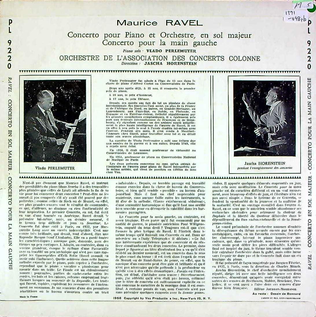 商品コード:1371-048pb[Pathé-VOX] V.ペルルミュテール(pf)/ ラヴェル:Pf協奏曲, 左手のためのPf協奏曲