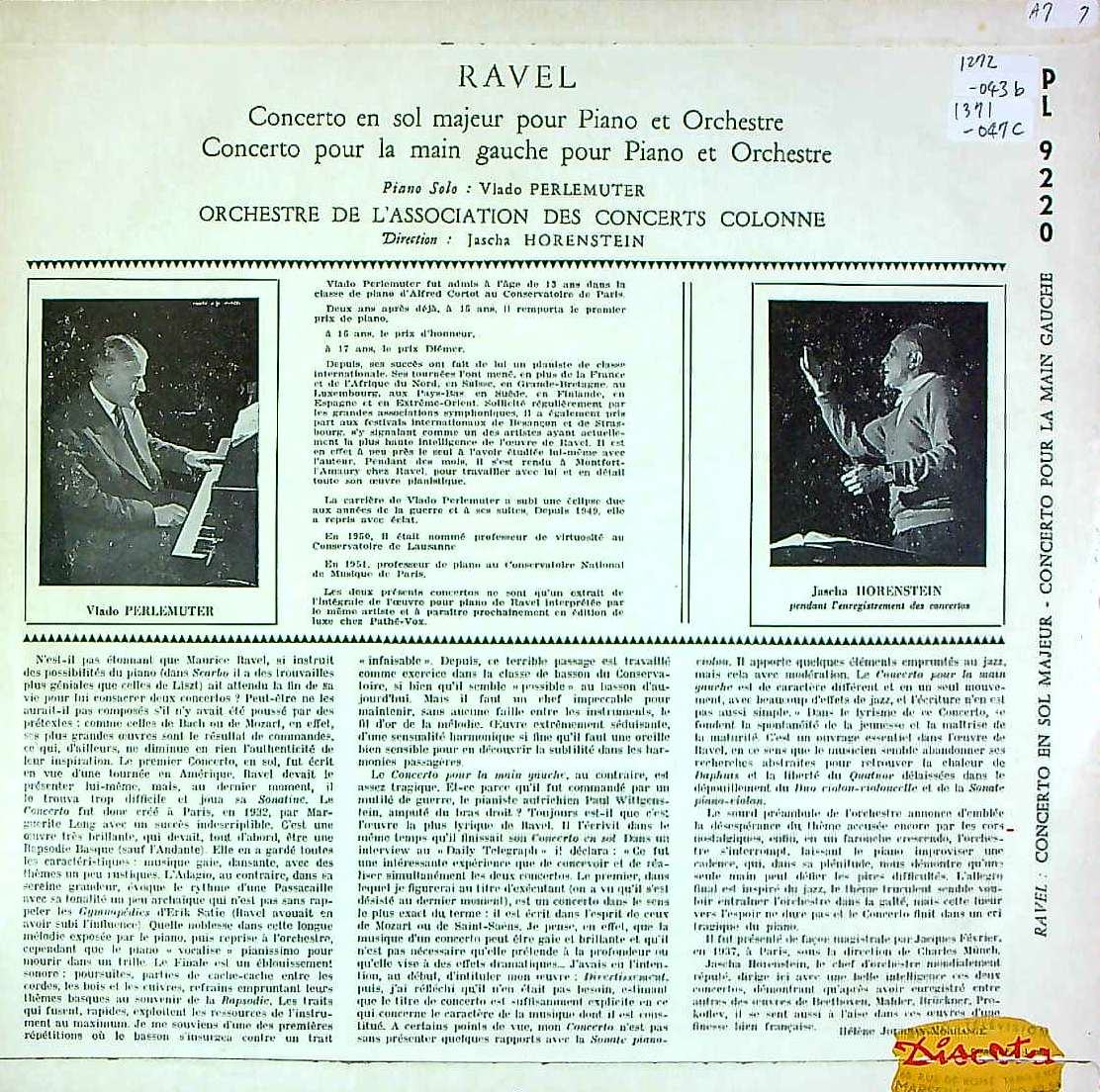 商品コード:1371-047c[Pathé-VOX] V.ペルルミュテール(pf)/ ラヴェル:Pf協奏曲, 左手のためのPf協奏曲