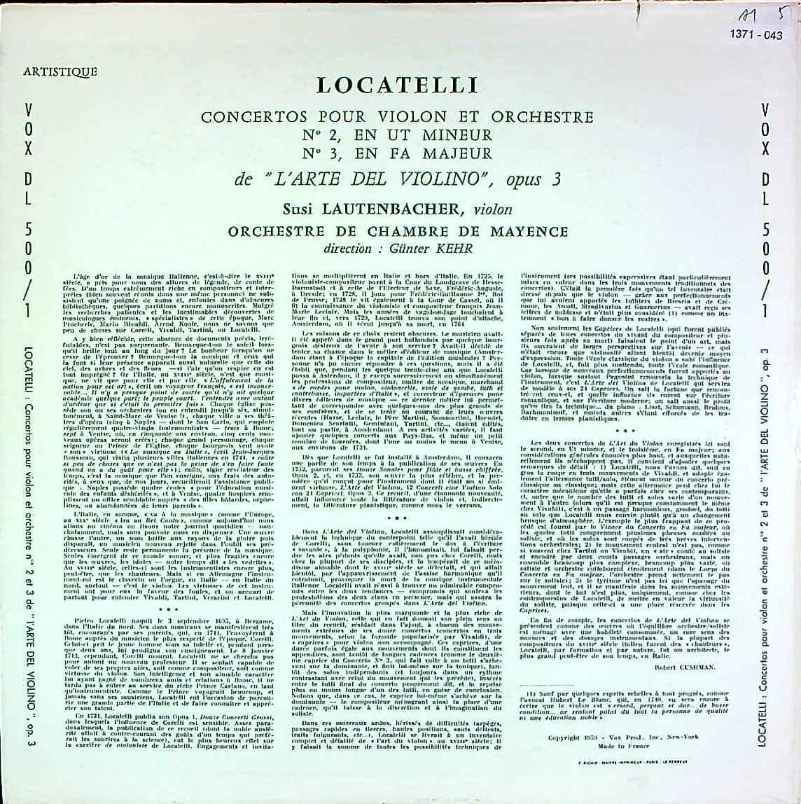 商品コード:1371-043[VOX] S.ラウテンバッハー(vn)/ ロカテッリ:Vn協奏曲集「ヴァイオリンの技法」Vol.1