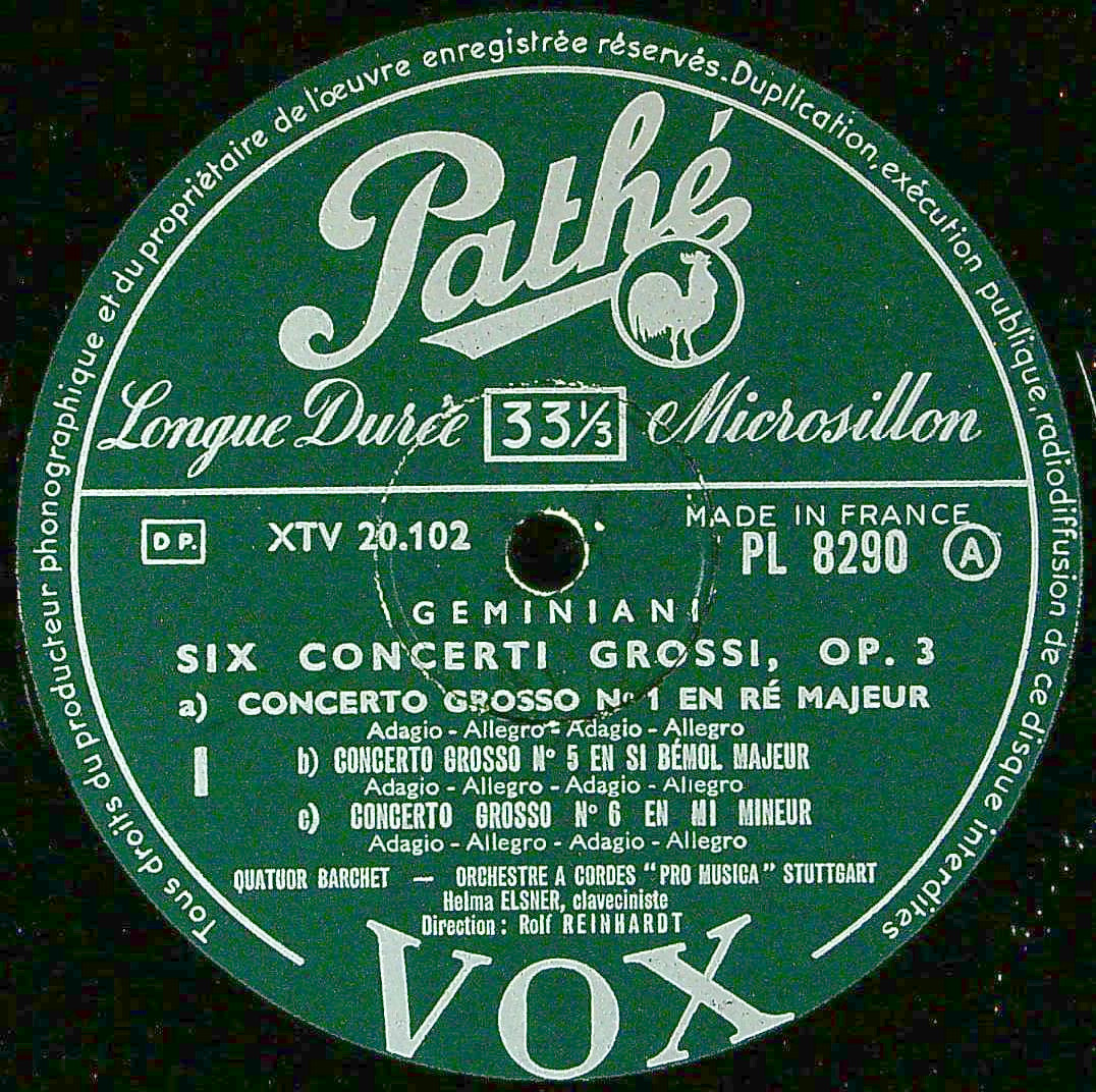 商品コード:1371-041[Pathé-VOX] バルヒェットQt. R.ラインハルト/ ジェミニアーニ:6つの合奏協奏曲Op.3
