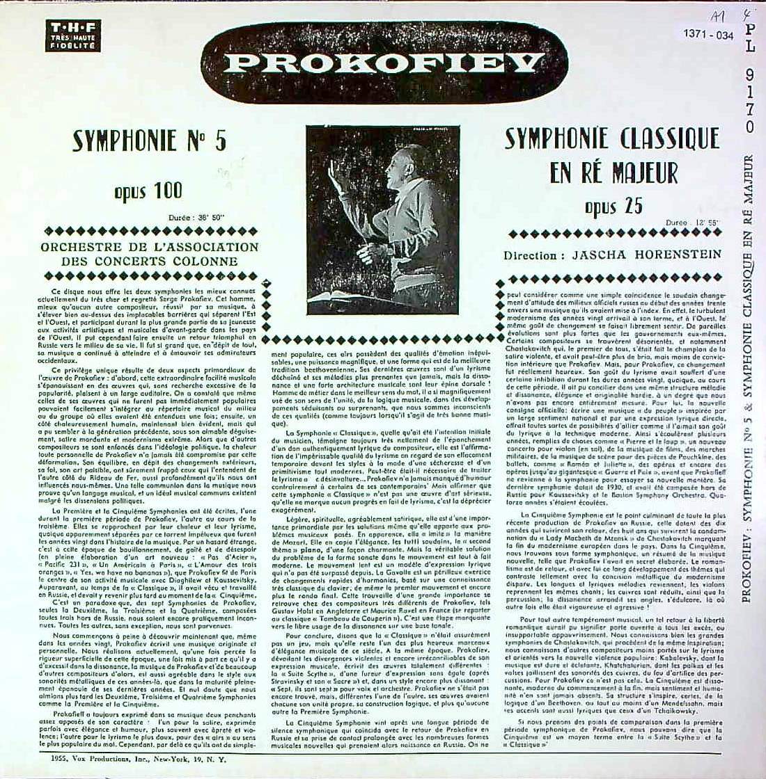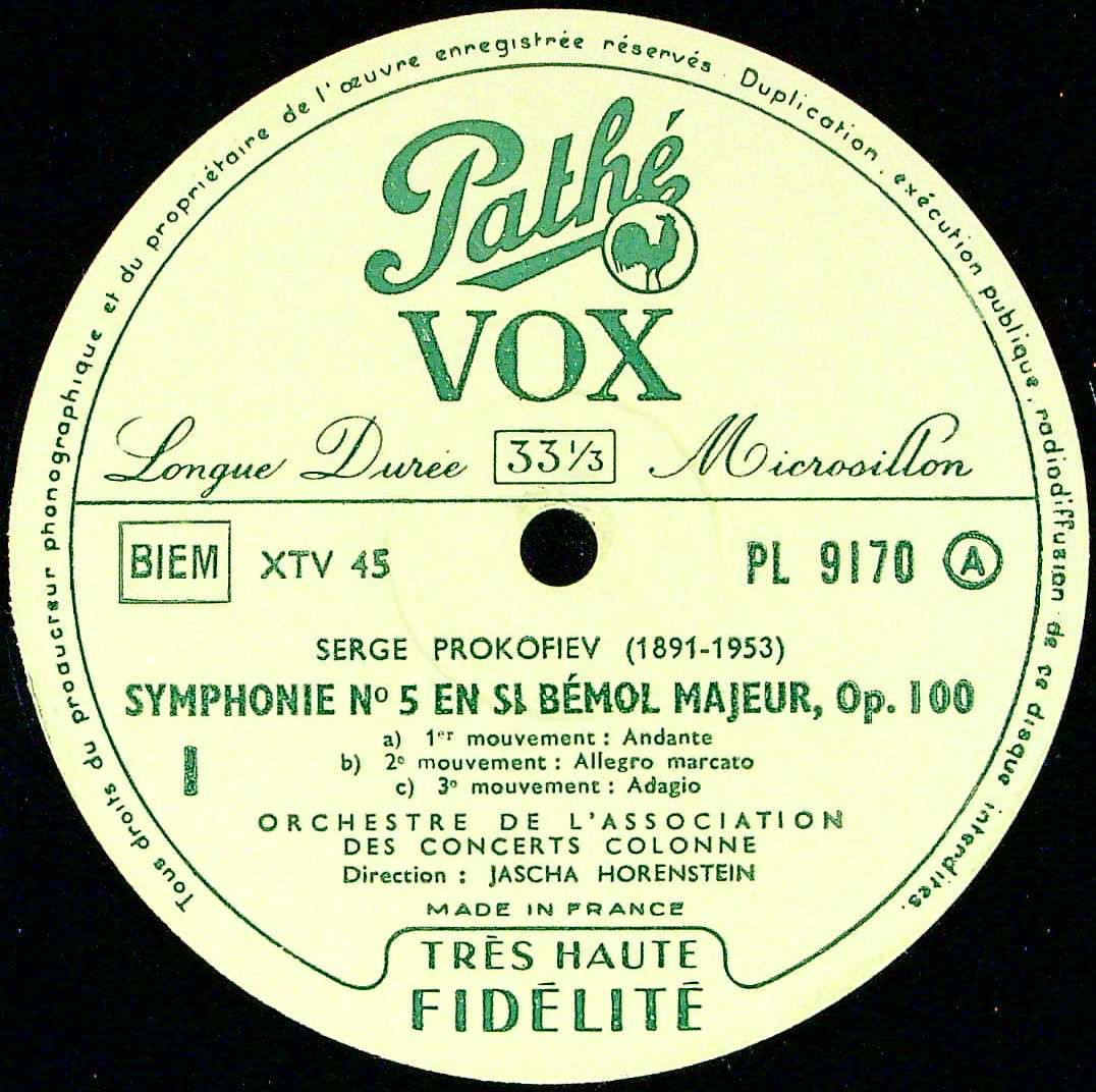 商品コード:1371-034[Pathé-VOX] J.ホーレンシュタイン/ プロコフィエフ:交響曲5番, 1番「古典的」