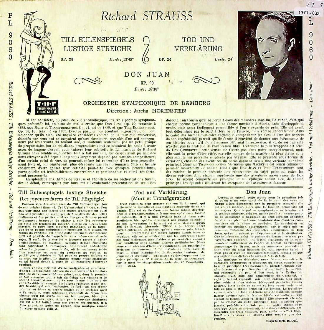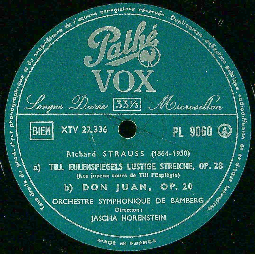 商品コード:1371-033[Pathé-VOX] J.ホーレンシュタイン/ R.シュトラウス:ティル・オイレンシュピーゲル, ドン・ファン, 死と変容