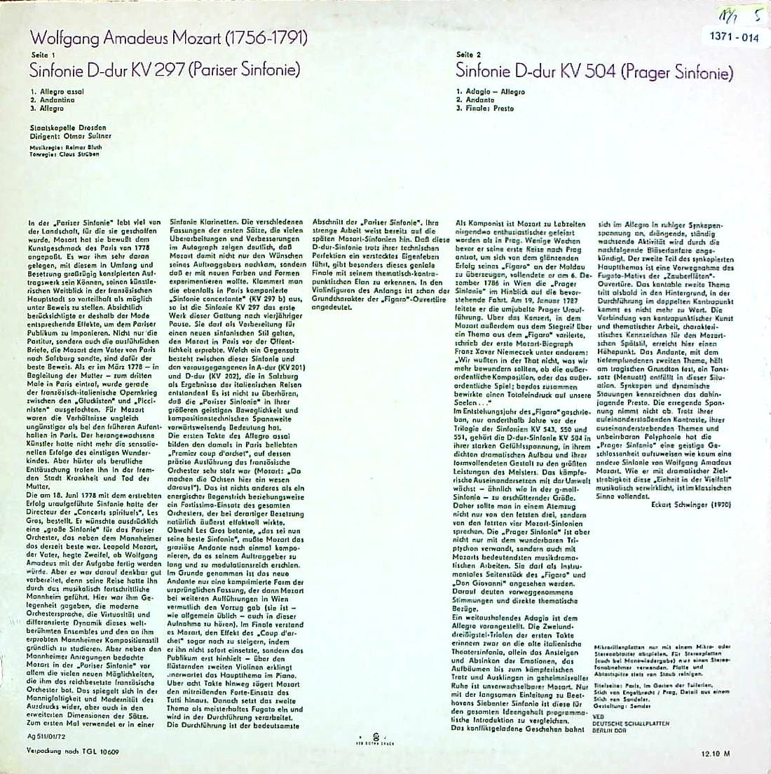 商品コード:1371-014n[ETERNA] O.スウィトナー/ モーツァルト:交響曲31番K.297「パリ」, 38番K.504「プラハ」