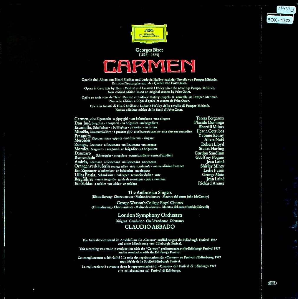 商品コード:BOX-1723[仏DGG] C.アバド/ ビゼー:歌劇「カルメン」(全曲)