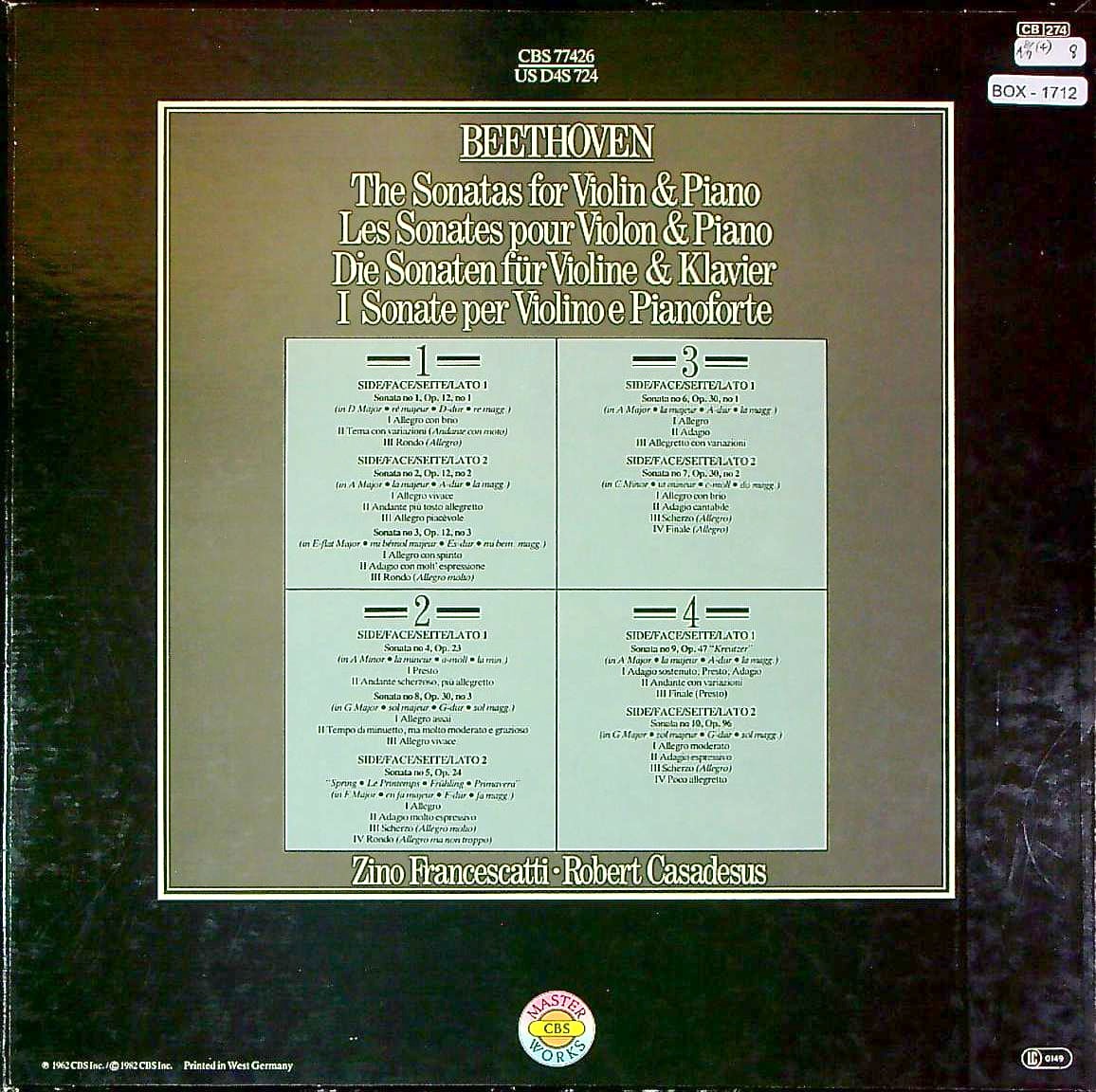 商品コード:BOX-1712[独CBS] Z.フランチェスカッティ(vn)/ ベートーヴェン:Vnソナタ全集(全10曲)