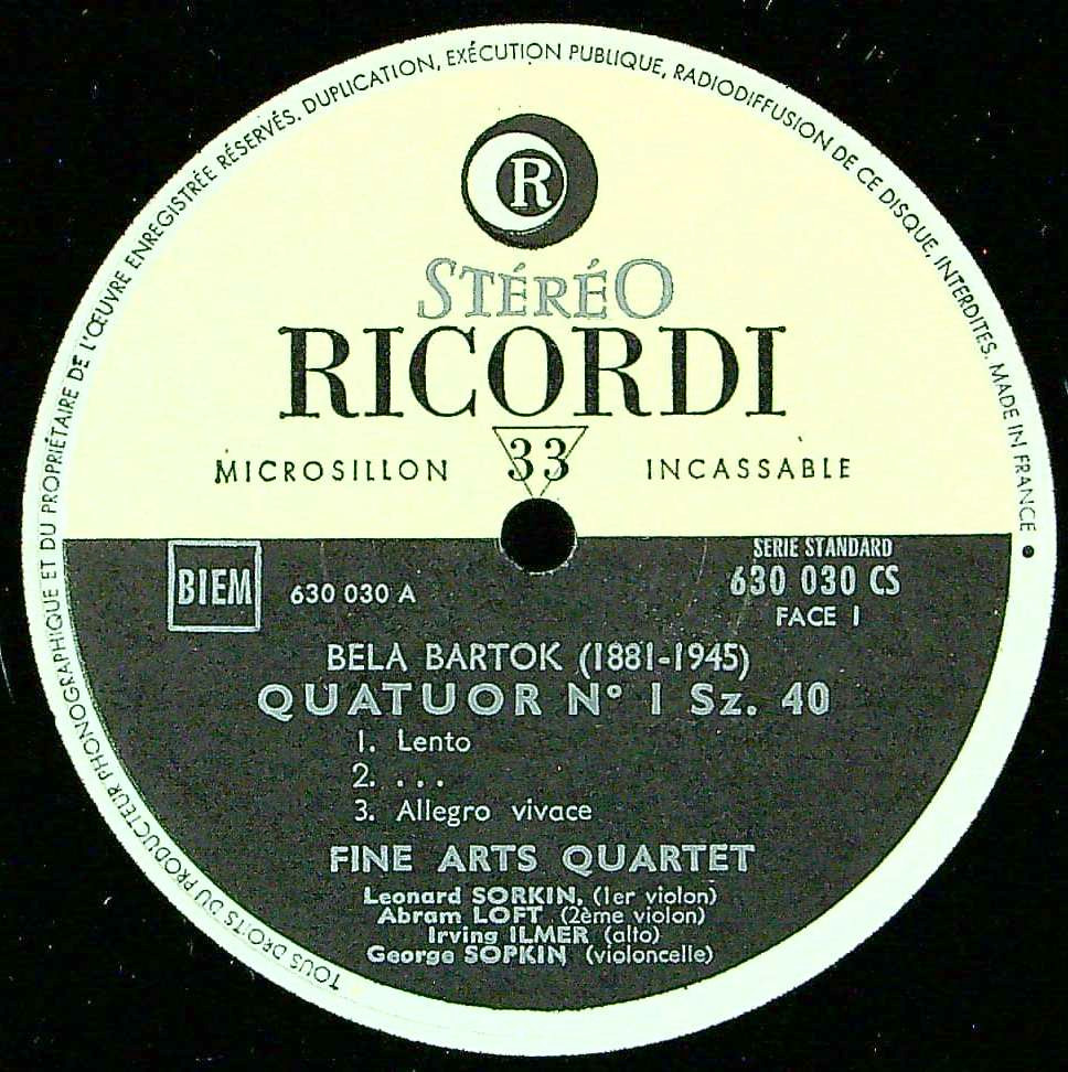 商品コード:REG-4136n[RICORDI] ファイン・アーツQt. / バルトーク:SQ全集(1番~6番)