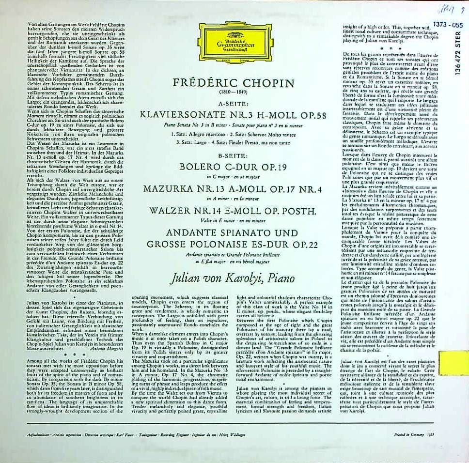 商品コード:1373-055[DGG] J.v.カーロイ(pf) / ショパン:Pf作品集/Pfソナタ3番, ボレロOp.19, マズルカ13番 他