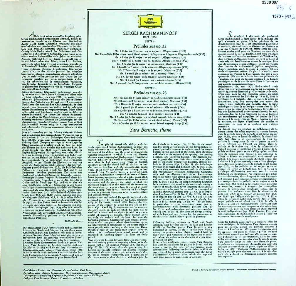 商品コード:1373-053b[DGG] Y.ベルネット(pf) / ラフマニノフ:前奏曲集Op.32~10曲, 12番, 前奏曲集Op.23~9曲