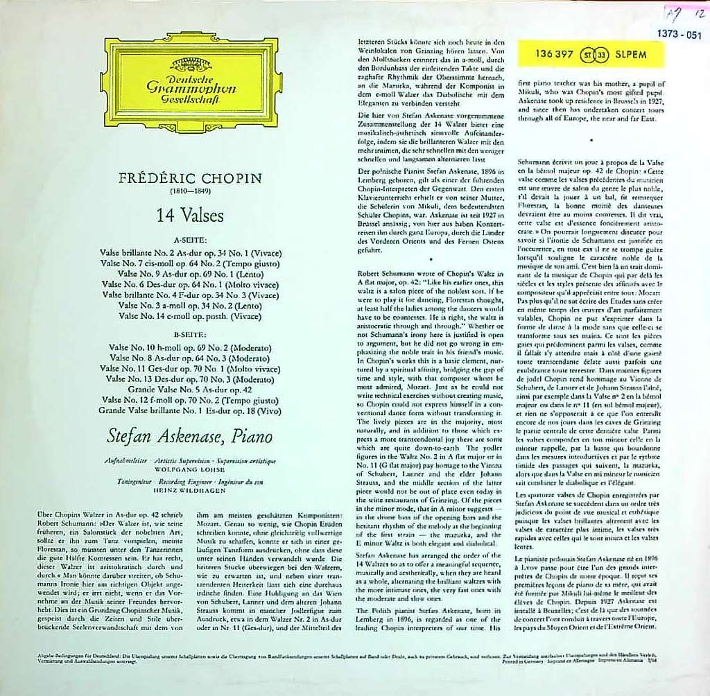商品コード:1373-051t[DGG] S.アスケナーゼ(pf) / ショパン:ワルツ全集(全14曲版)/ ワルツ1~14番