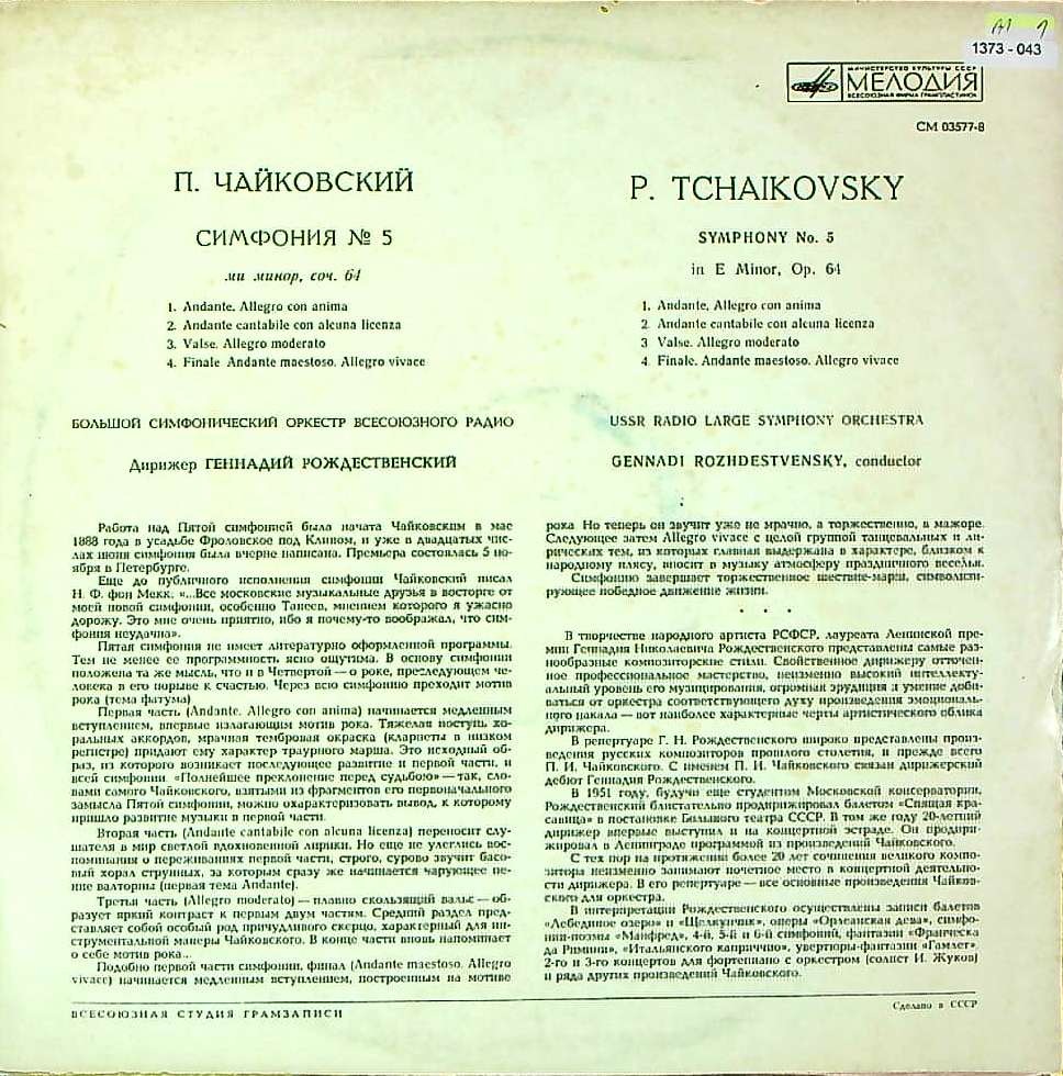 商品コード:1373-043n[MELODIYA] G.ロジェストヴェンスキー / チャイコフスキー:交響曲5番Op.64