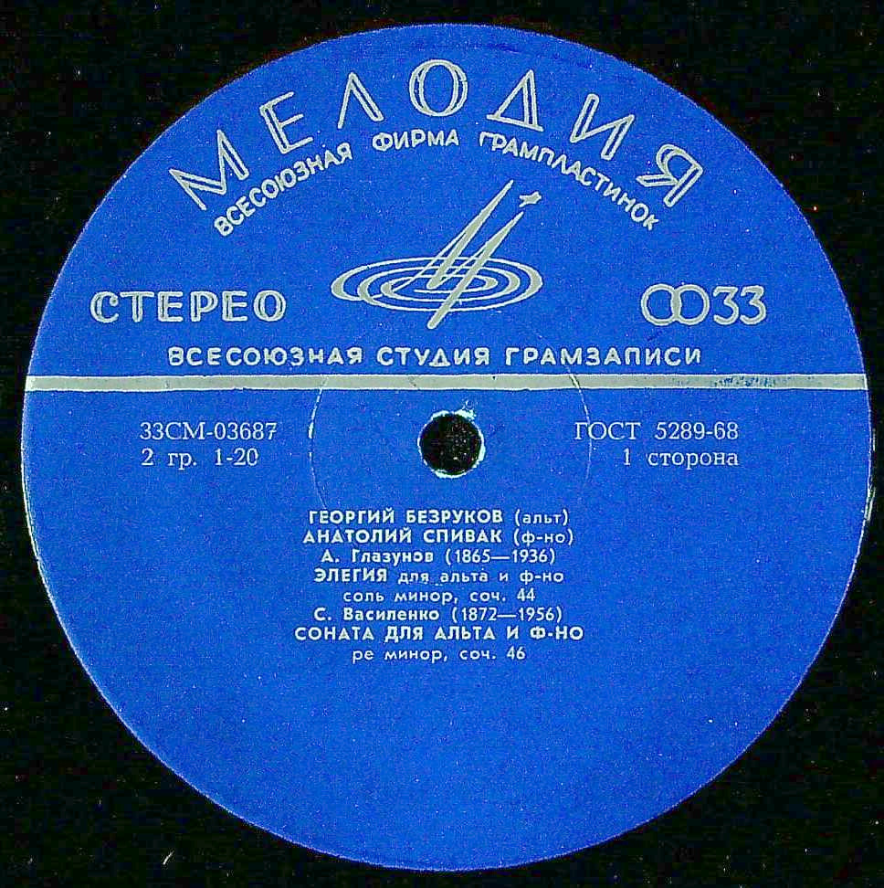 商品コード:1373-041n[MELODIYA] L.ベズルコフ(va)/ Vaソナタ集/グラズノフ:エレジー, ワシレンコ:Vaソナタ, ミヨー:ソナチネ1番, ワイナー:Vaソナタ