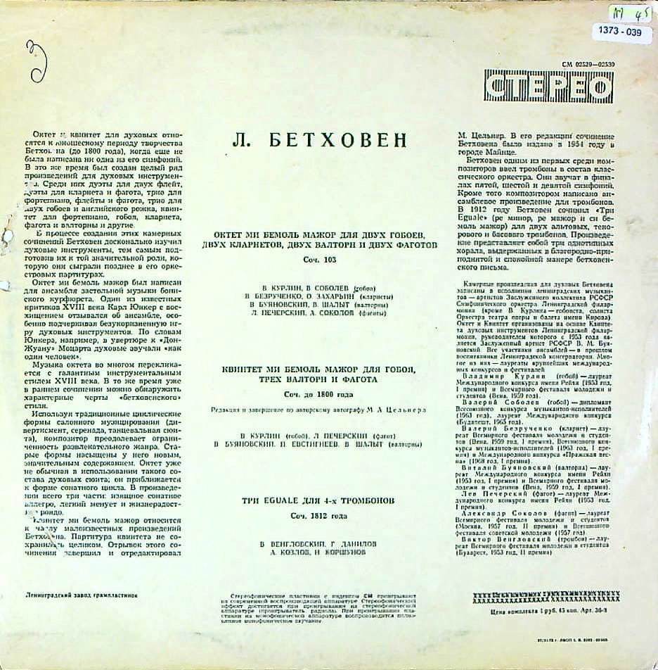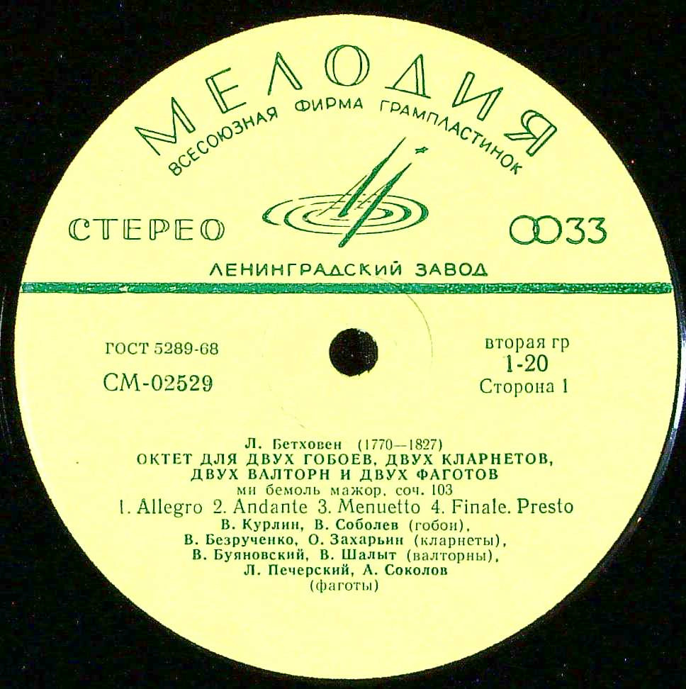 商品コード:1373-039n[MELODIYA] V.クルリン, V.ソヴォレス(ob)/ ベートーヴェン:管楽合奏曲集/八重奏曲Op.103「パルティア」 他