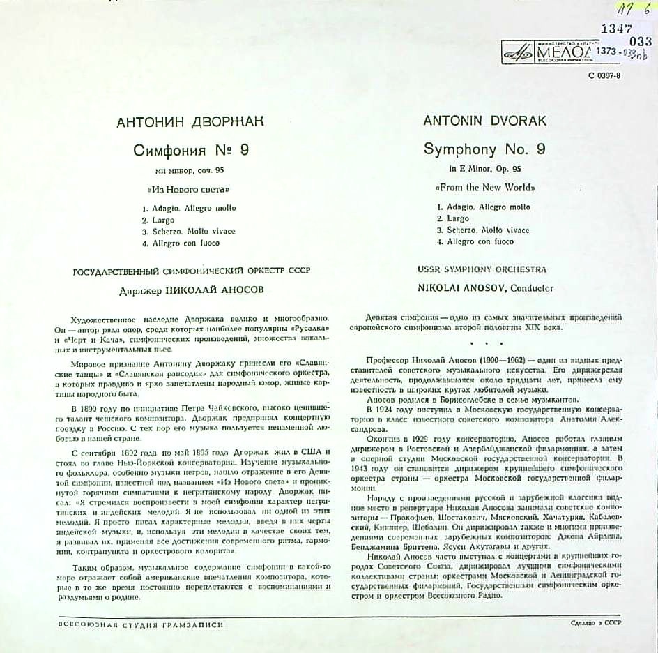 商品コード:1373-038nb[MELODIYA] N.アノーソフ/ ドヴォルザーク:交響曲9番「新世界より」