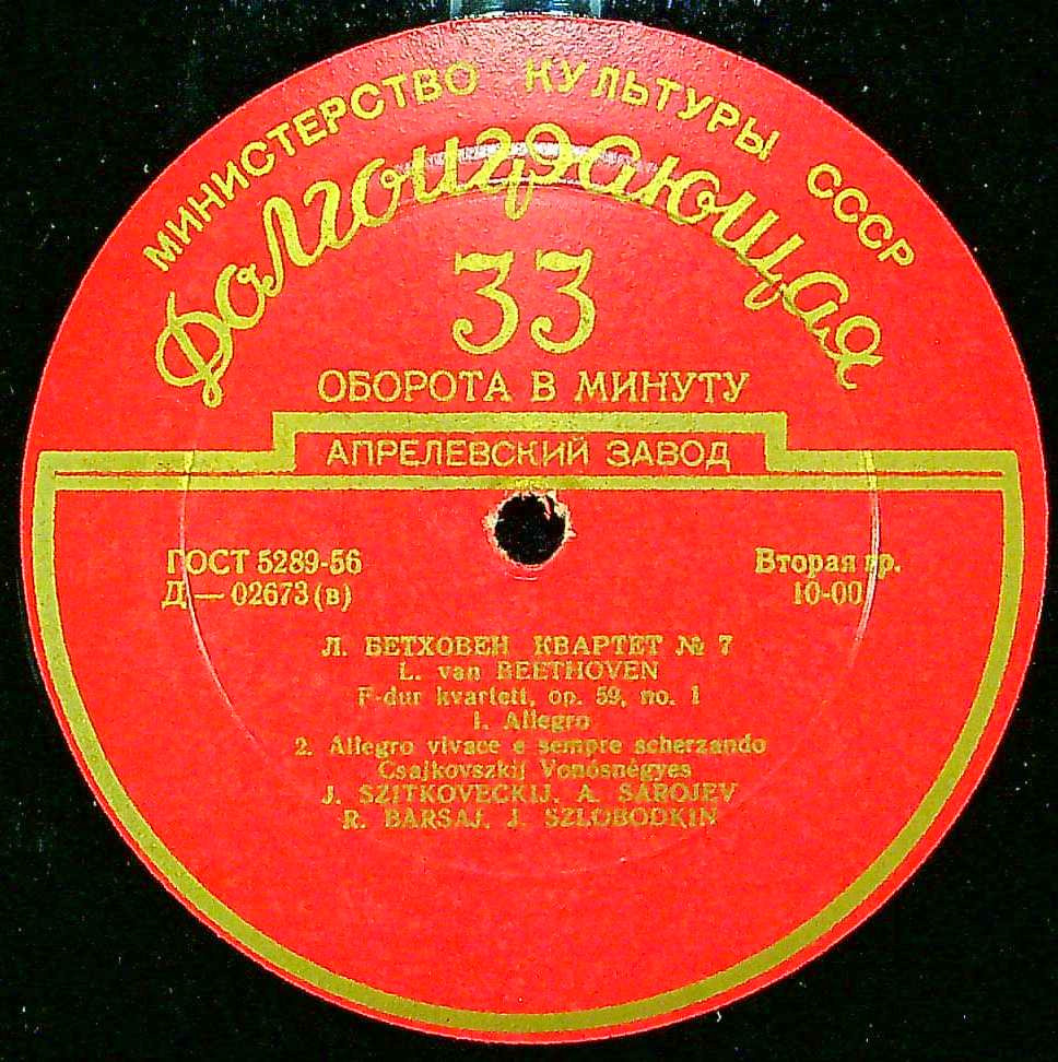 商品詳細:J.シトコヴェツキーを中心としたチャイコフスキーQt.によるベートーヴェン。殆ど入荷のない初期プレス。時期的には'50年代。針を落として驚いた。LPを聴いている感覚ではない。SP期のあの濃密な空気感と、どこまでもナイーブに音を出す各メンバーのデリカシーの塊のような演奏に、声も出ない。これが本物なのか…今までLPで聴いてきた演奏は何なのかと思う。神棚にまつりたくなる程の宝物的内容は、まさに神品!! 高額だが納得の内容!!チャイコフスキー弦楽四重奏団は1954年モスクワ音楽院の卒業生らによりモスクワで結成。第1Vn:ユリアン・シトコヴェツキー、第2Vn:アントン・シャリーエル、Va:ルドルフ・バルシャイ、Vc:ヤコフ・スロボトキンで発足。ユリアン・シトコヴェツキー(1925-1958)は旧ソ連で最も著名なヴァイオリン奏者で、やはり旧ソ連の名ピアニスト、ベラ・ダヴィトヴィチと結婚したことでも知られる。1952年のヴィエニャフスキ国内コンクールで2位入賞。Vaのルドルフ・バルシャイも名手として、後にボロディンQt.メンバーとなり、指揮者として活躍する。チャイコフスキーQt.の録音は実は全部で3枚しかない。当盤の他に、ショスタコーヴィチ3番(1948年録音)、ショスタコーヴィチ4番である。たった3枚のLPを残した団体だが、そのメンバーの凄さから伝説的な弦楽四重奏団となっている。中でも「ラズモフスキー1番」は最も注目される録音で抒情性が生かされたデリケートな演奏で神品と称しても違和感のない正に伝説的な演奏である。今となっては歴史の1ページを飾るだけの弦楽四重奏団となってしまったが、実際耳にしてみると、その価値の大きさに驚くことになる。家宝といってよい内容!
