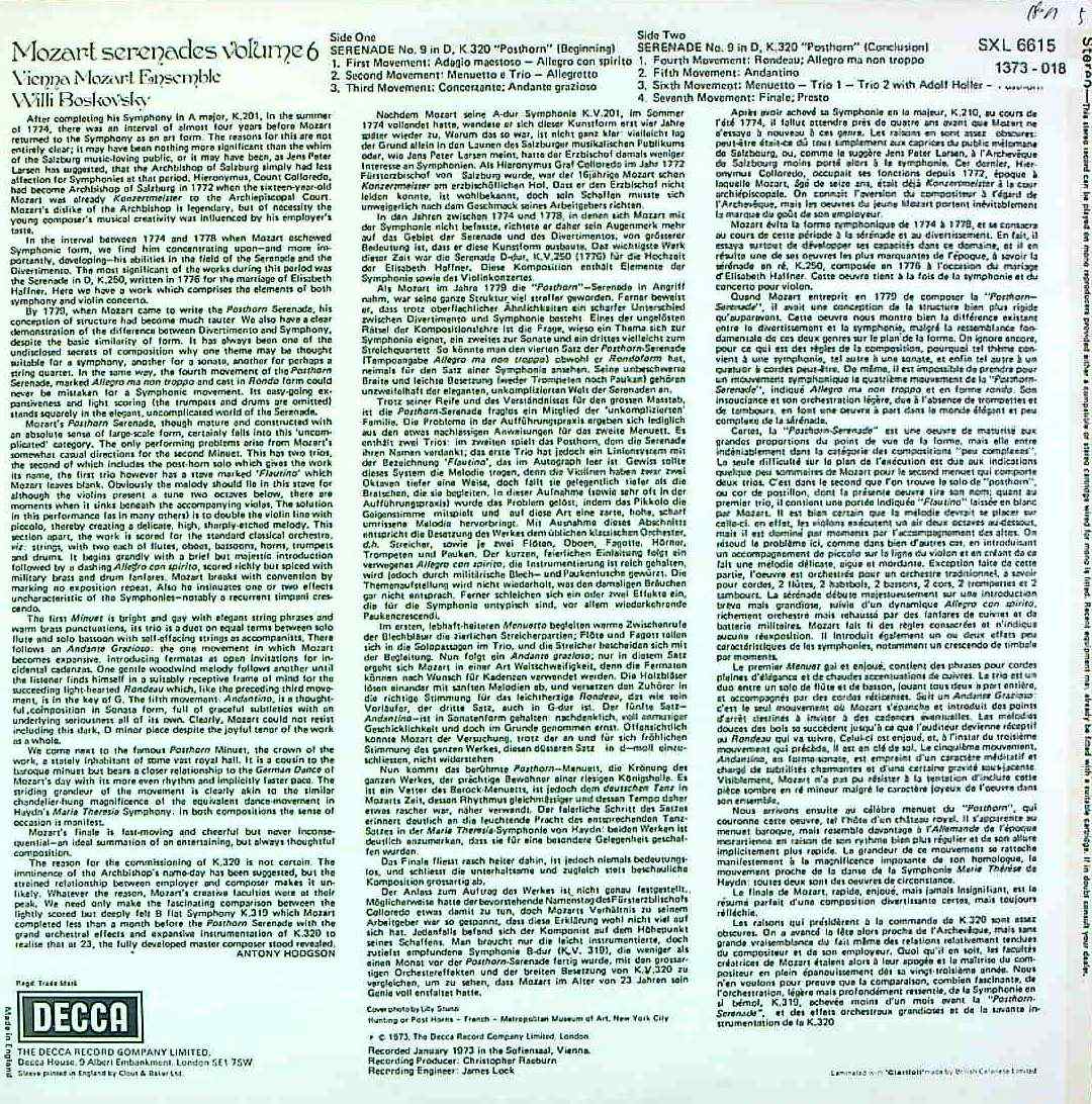 商品コード:1373-018[DECCA] W.ボスコフスキー/A.ホラー(Posthorn) / モーツァルト:セレナーデ集Vol.6/管弦楽のためのセレナーデ9番K.320「ポストホルン」