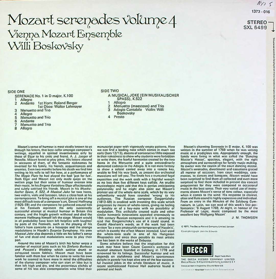 商品コード:1373-016[DECCA] W.ボスコフスキー/ モーツァルト:セレナーデ集Vol.4/1番K.100「フィナール・ムジーク」, ディヴェルティメントK.522「音楽の冗談」