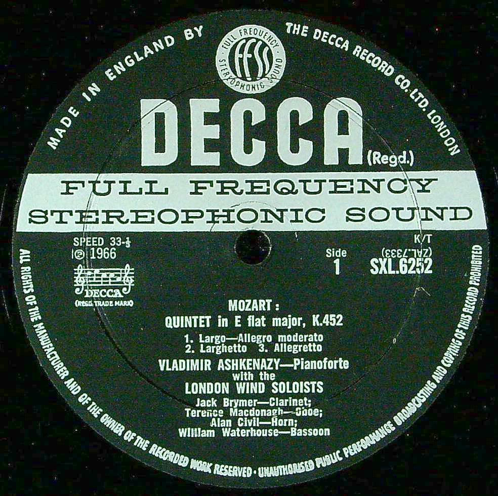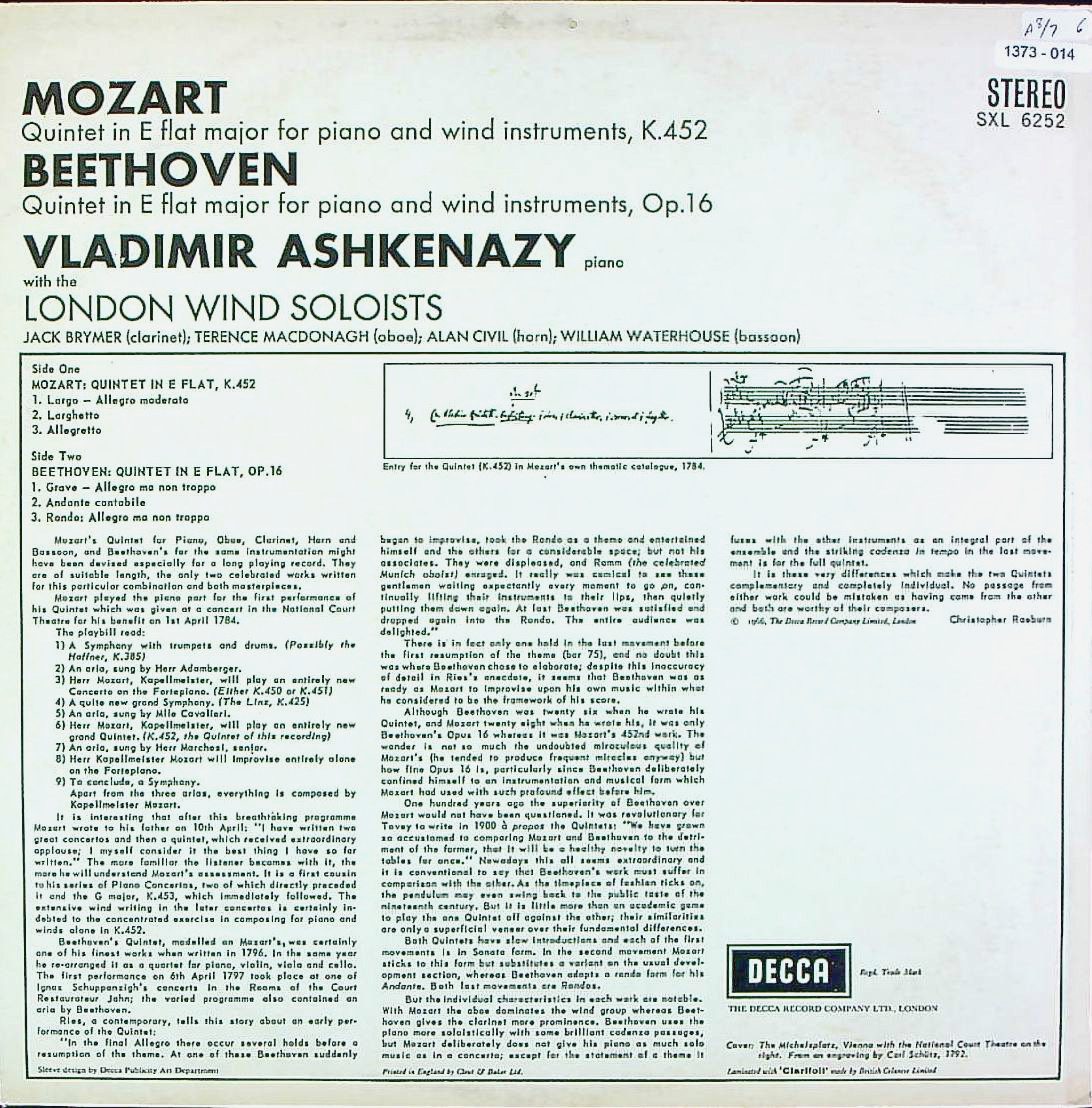 商品コード:1373-014[DECCA] V.アシュケナージ(pf) ロンドン管楽ソロイスツ/Pfと管楽器のための五重奏曲/モーツァルト, ベートーヴェン