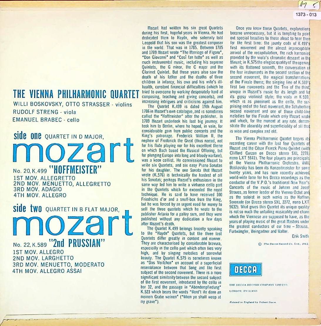 商品コード:1373-013n[DECCA] ウィーン・フィルハーモニーQt./ モーツァルト:弦楽四重奏曲集/20番K.499「ホフマイスター」, 22番K.589「プロシャ王2番」