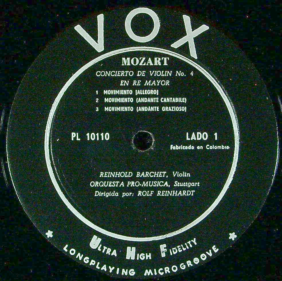 商品コード:1373-011[VOX] R.バルヒェット(vn)/ モーツァルト:Vn協奏曲4番K.218, 6番K.268