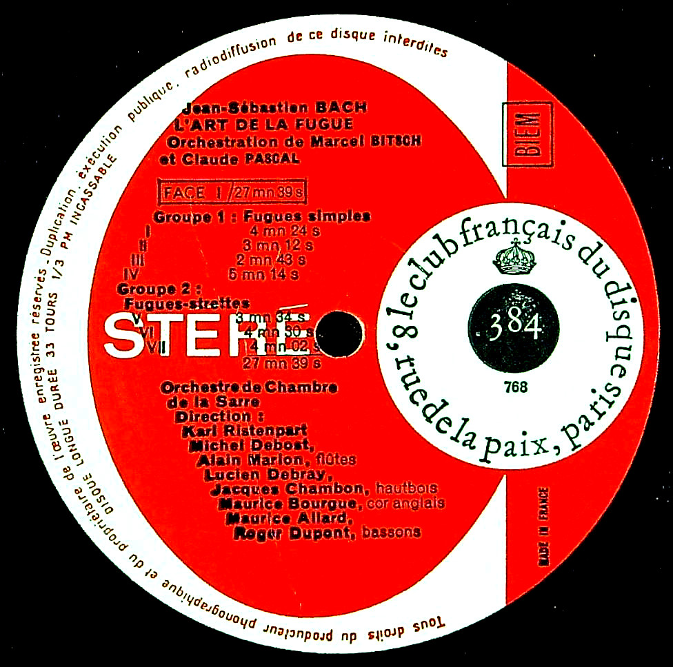 商品コード:1373-005b[Club Français] K.リステンパルト/ バッハ:フーガの技法B.1080