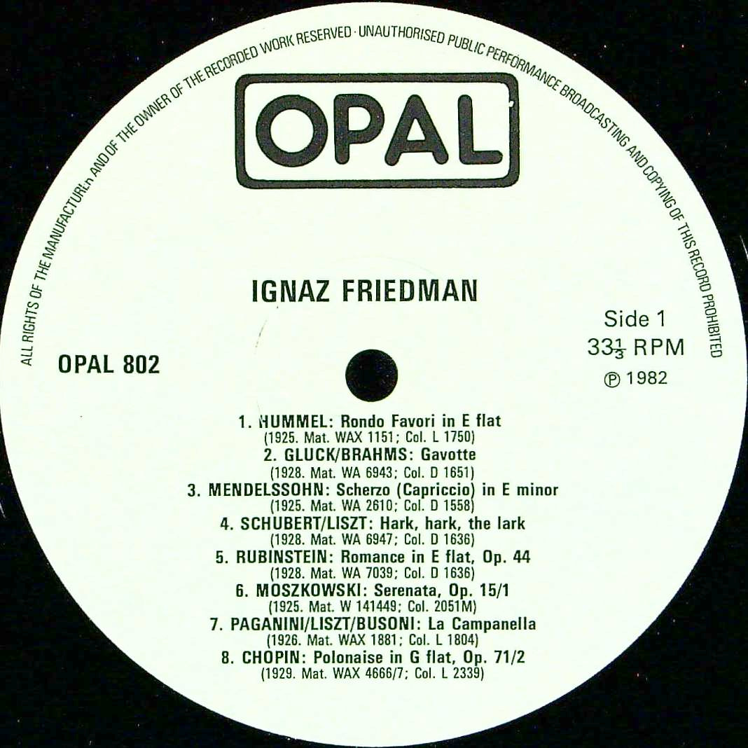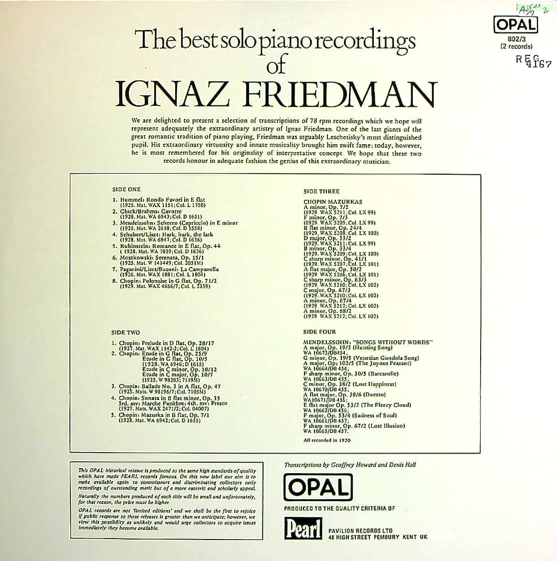 商品コード:REG-4167p[英OPAL] I.フリードマン(pf) / 「I.T.リードマン・Pfリサイタル」ショパン, メンデルスゾーン 他