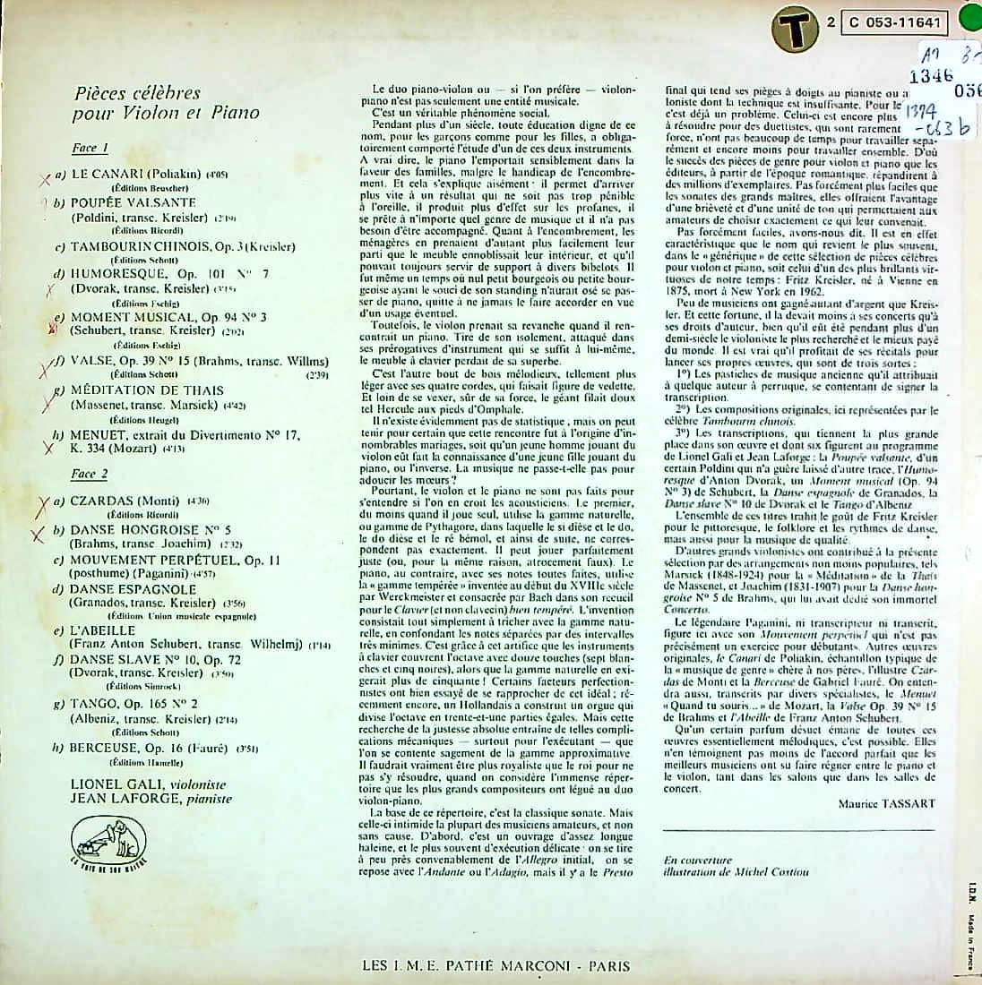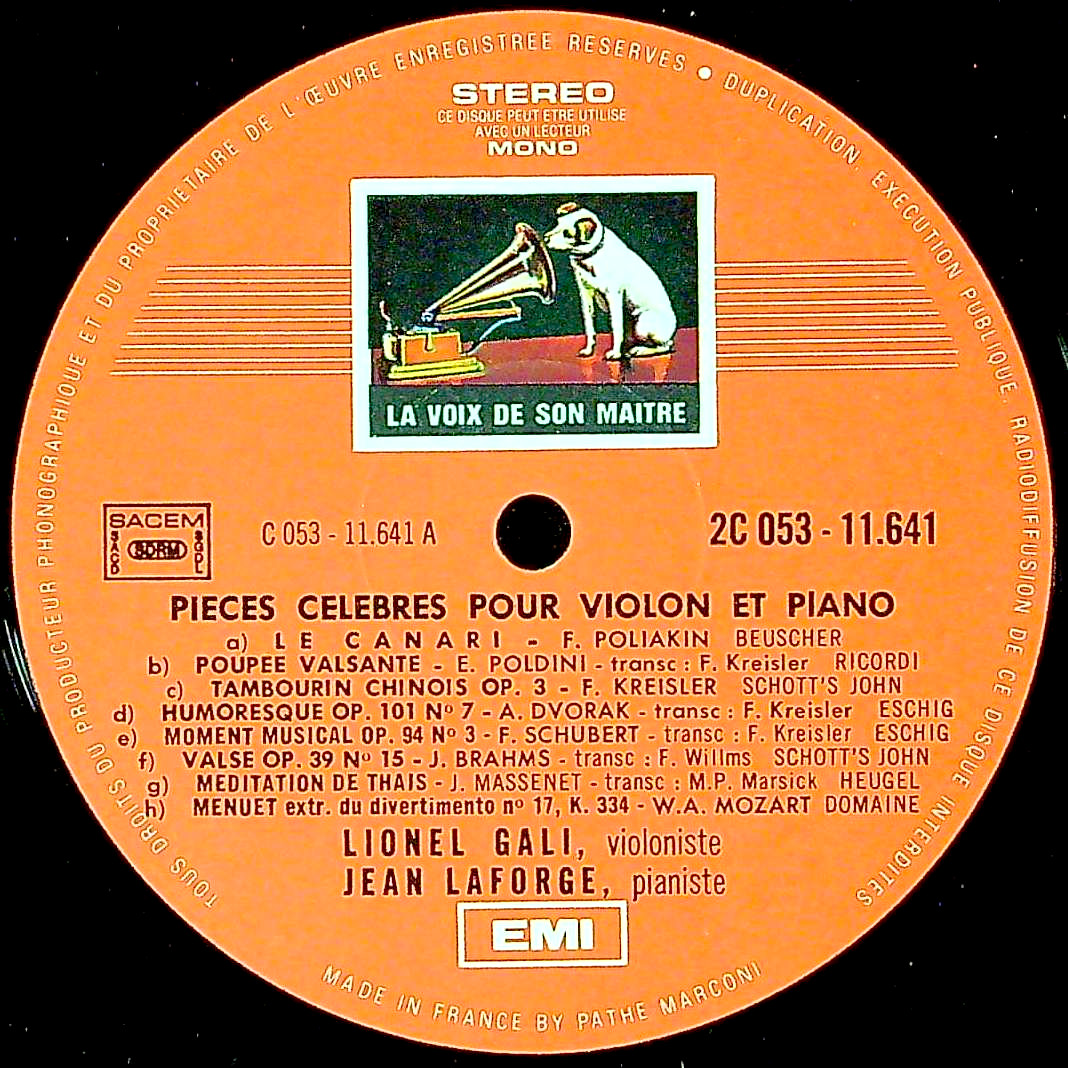 商品詳細:1972年初出の珍しいVn小品集。全16曲入り。'70年代に入って、このような企画は多くない。ピアノのラフォルジュはCNDレーベル等で有名なピアニストだが、Vnのガリは今まで聞いたことのない人。リオネル・ガリと同じ名のヴァイオリニストがBlue Noteに録音を残しており、Jazz系の人なのかも知れない。JAZZ界にもグラッペリのように優れたVnはいる。同一人物なのか不明だがパリ器楽グループのメンバーであったことは解かっている。パリ器楽グループはおそらくJ.ラフォルジュ(pf)L.ガリ(vn)B.パスキエ(va)R.ベー(vc)の4人ではないかと思われる。日本では「新フランス音楽のエスプリ・シリーズ」とのタイトルでサン・サーンスの室内楽曲集を発売していた。1曲1曲の完成度の高さ、節回し等から、若手ではなさそうだ。Vn好きならば、絶対お薦めの一枚!1970年代録音のVn小品集としては最高ランクの内容!入荷は多くない!当LPのフランス語タイトル:「Pièces Célèbres Pour Violon & Piano」。