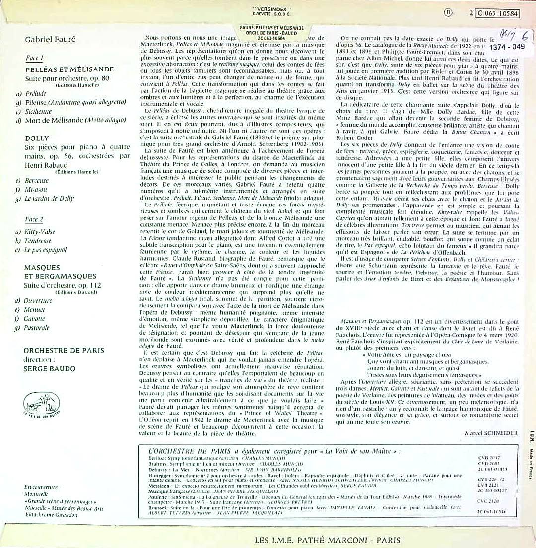 商品コード:1374-049[VSM] S.ボド / フォーレ:管弦楽作品集/ペレアスとメリザンド, ドリー 他