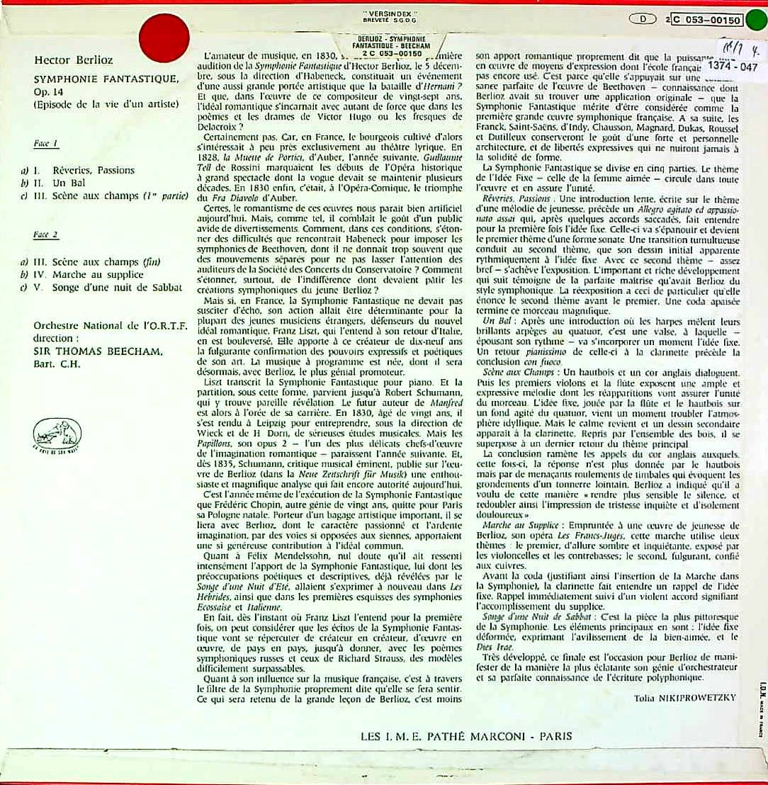 商品コード:1374-047[VSM] T.ビーチャム/ ベルリオーズ:幻想交響曲Op.14