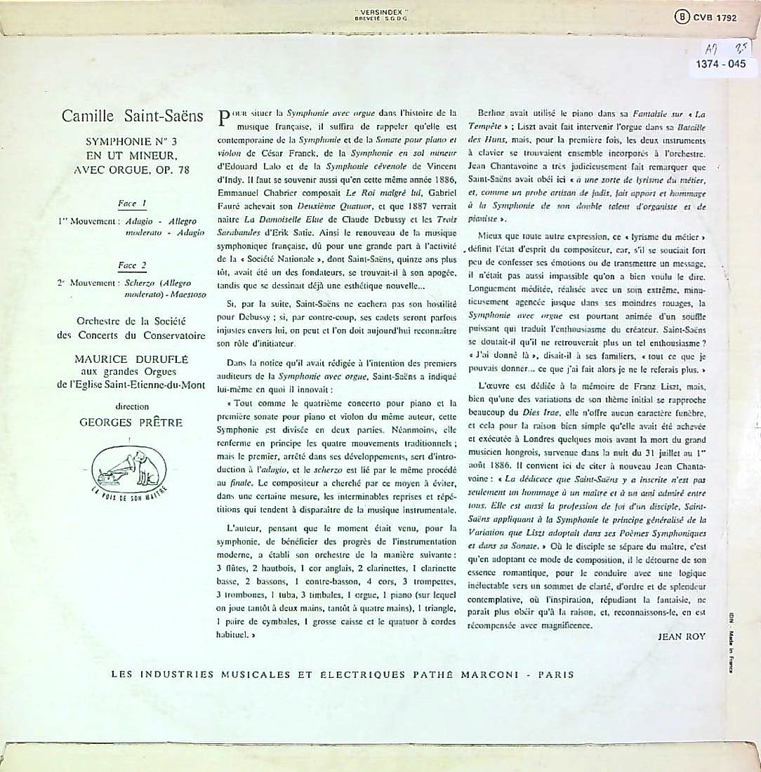 商品コード:1374-045[VSM] G.プレートル指揮 M.デュリュフレ(org) / サン・サーンス:交響曲3番Op.78「オルガン付」