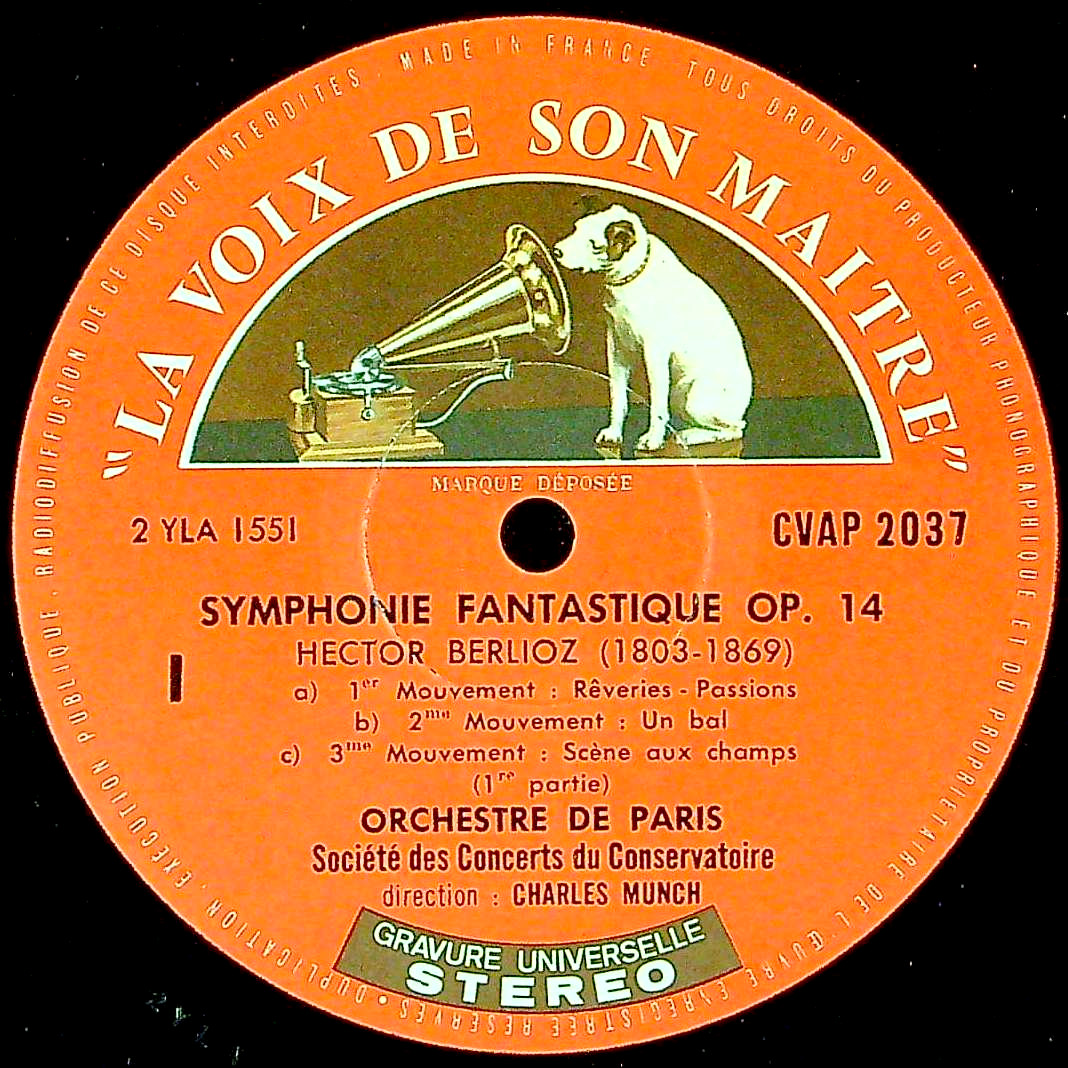 商品詳細:CVAPとCVBという2種はジャケットも同一デザイン(ニッパーが異なる)、レーベルデザインも近く、マトリクスも同じ場合がある。1-2年程度しかプレスは違わず、マスターが同じなので音質差はあっても小さいだろう。特に初出に拘るのでなければ、CVBでも音楽を聴くには十分だが、拘るならばCVAPが本当のオリジナルとなる。CVAPなら音質で不満を感じることはまずない。ミュンシュ最後期の録音として、今後ますます評価が高くなるだろう。ステレオでは他にこれを超えるものがないのでは?と思えるほど。まさに記念碑的名演!CVBでも初出の赤白SCニッパー中stereo段なしが稀に入っていることはあっても番号はCVB 2037と印刷されており完全なオリジナルではない。CVAPのジャケに入る場合はほぼCVAP 2037と印刷された赤白SCニッパー中stereo段なしレーベルが入っており、まずオリジナルといえる。シャルル・ミュンシュはベルリオーズのスペシャリストとして、国際ベルリオーズ協会の会長を長く務め、幻想交響曲は4つのスタジオ録音と11のライヴ録音(大半が)が存在するらしい。スタジオ録音は1949年のフランス国立放送局管弦楽団、1954年のボストン交響楽団、1962年の同じくボストン交響楽団、そして最後の1967年パリ管弦楽団となる。1949年の録音については未確認。1954年ボストンso.はRCAからLM 1900/LSC 1900で発売。1962年ボストンso.はRCAからLM 2608/LSC 2608、英国:SB 6521で出ており、これもステレオ録音の名演として知られる録音。ライヴ録音では1966年のハンガリー放送交響楽団との録音がNGAROTON:SLPX 11842で出ている。この曲の原題は『ある芸術家の生涯の出来事、5部の幻想的交響曲』といい、「恋に深く絶望しアヘンを吸った、豊かな想像力を備えたある芸術家」の物語を音楽で表現したもので、ベルリオーズの代表作であるのみならず、初期ロマン派音楽を代表する楽曲である。現在でもオーケストラの演奏会で頻繁に取り上げられる。標題音楽の先駆けとなった交響曲であり、フランスを代表する大規模オーケストラ作品。ミュンシュの他にも録音は多いが、一つだけ選ぶとすれば1967年のミュンシュ/パリ管弦楽団で良いのではと思われる名演である。1ヵ月後の1967年11月にシャンゼリゼ劇場でパリ管創設記念演奏会が開かれ、ここで演奏した「幻想交響曲」はスタジオ録音以上の演奏だったと言われる。それはAltus盤のCDで聴くことができる。これは幻想交響曲の代表作として、またシャルル・ミュンシュの代表作としても外す事のできない名演であることは確か!