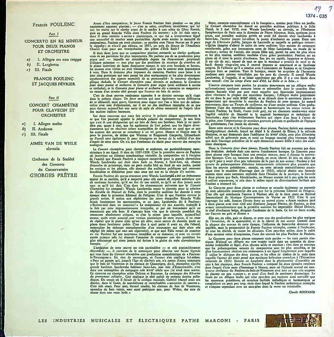 商品コード:1374-035[VSM] F.プーランク, J.フェヴリエ(pf) G.プレートル/ プーランク:2Pfと管弦楽のための協奏曲 他