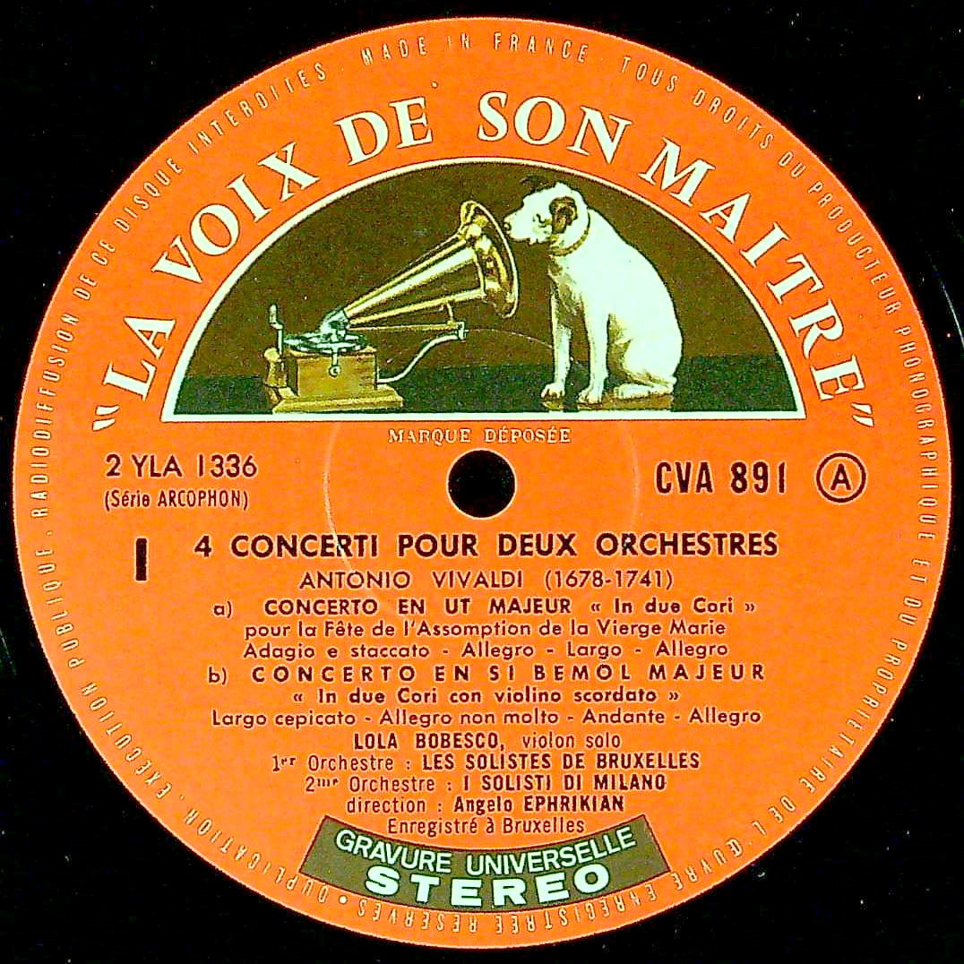 商品詳細:ローラ・ボベスクが参加したブリュッセル・ソリストと、イタリア・ミラノのミラノ・ソリストの混合Ens.と思われる。伊ARCOPHONが音源のようだ。聴けば、ブリュッセルの室内o.を弾き振りしていた頃のボベスクのサウンドそのもの。ソロ部分をボベスクとブリュッセル・ソリストが、そして、バックをミラノ・ソリスト達が担当しているようだ。2つのオケのための協奏曲となっているが、単純に言えば、Vnを主体とした合奏協奏曲のような感じ。全編にわたって、ボベスクのソロが圧倒的で、彼女の為のLPと思って良い。ASDF 891が初出番号。ボベスクの珍しいEMI系録音。イタリア人指揮者アンジェロ・エフリキアンがソリスティ・ディ・ミラノとボベスク率いるソリステ・デ・ブリュッセルの2つの合奏団の合奏で演奏。イタリアで録音されたのかと思っていたが、盤のマトリクスが2YLAなのでフランスで録音された事を意味する為、イタリアとベルギーの両団体がフランスで合流しての録音だったのではと思われる。イタリアからもArcophonレーベルから発売されている。また珍しく英国でも発売された。
