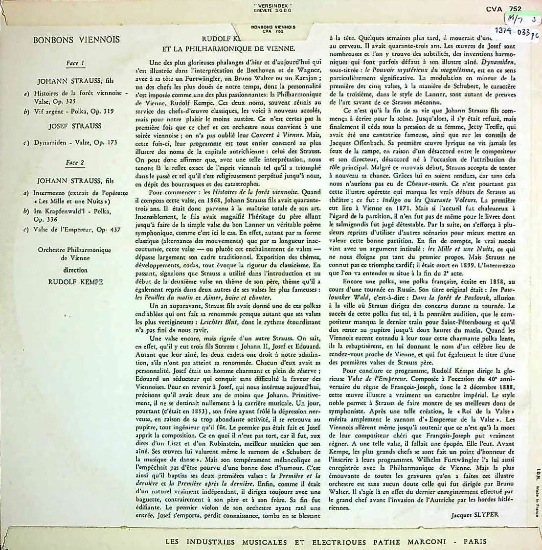 商品コード:1374-033pc[VSM] R.ケンペ/ 「ウィーンのボンボン」J.シュトラウスⅡ:ウィーンの森の物語, 浮気心, 皇帝円舞曲 他