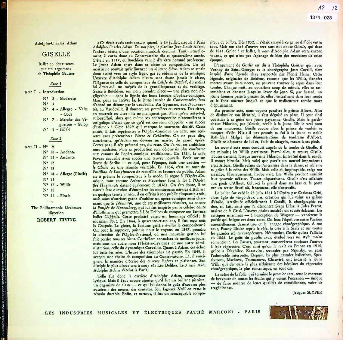 商品コード:1374-028[VSM] R.アーヴィング/ アダン:バレエ音楽「ジゼル」(抜粋)
