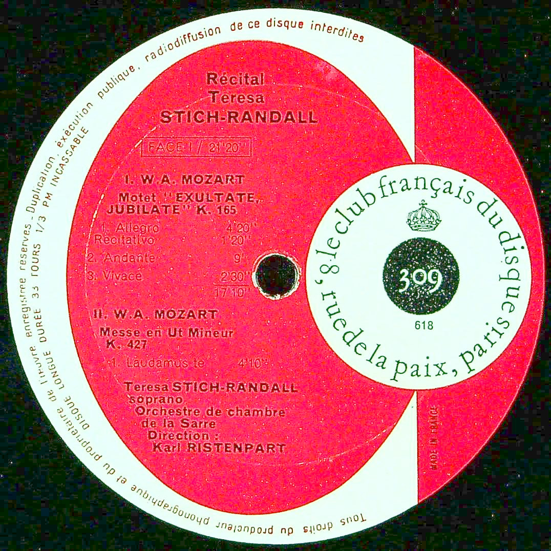 商品コード:1374-023b[Club Français] T.シュティヒ・ランダル(s) K.リステンパルト/ モーツァルト:エクスルターテ・ユビラーテK.165 他, ヘンデル, シューベルト:サルヴェ・レジナ