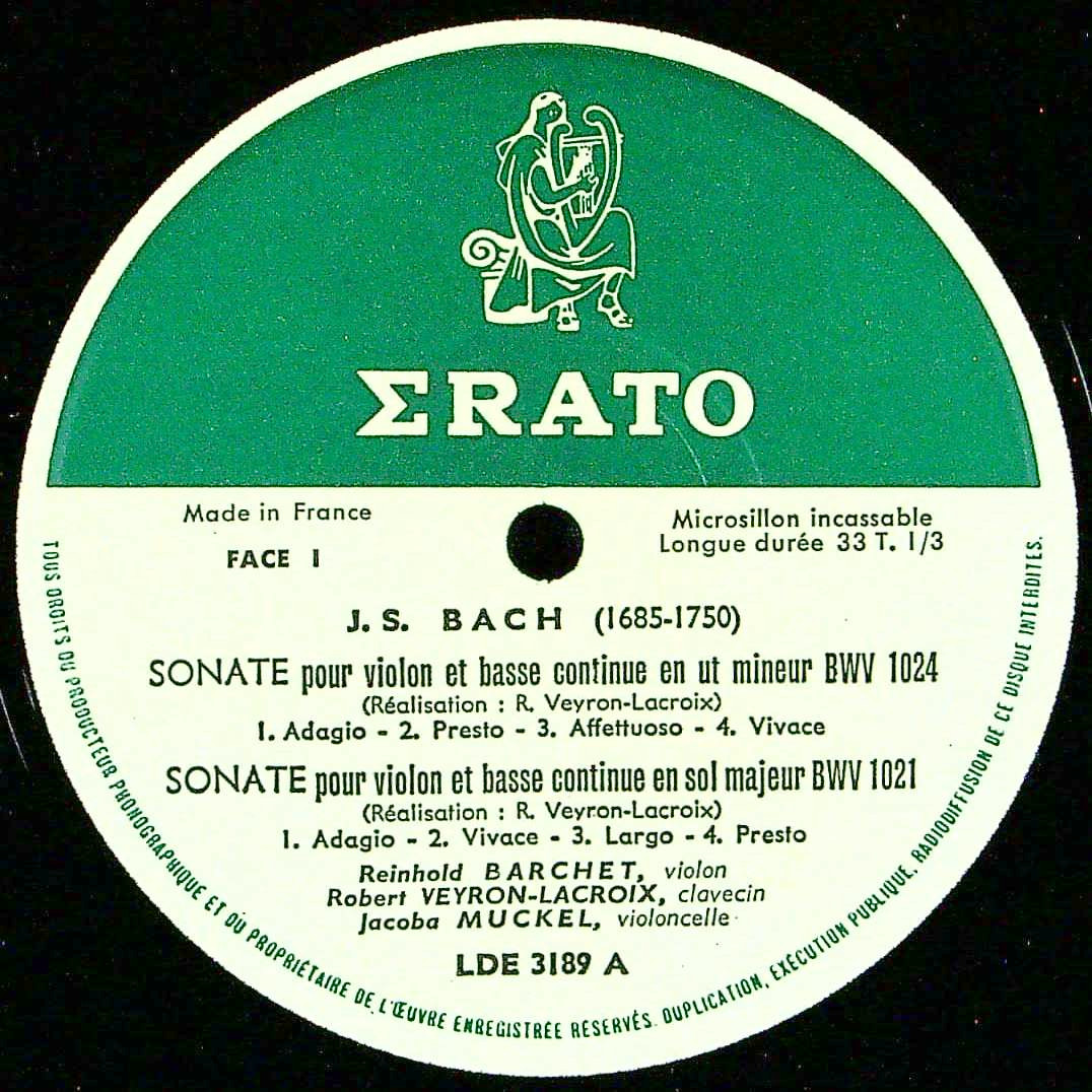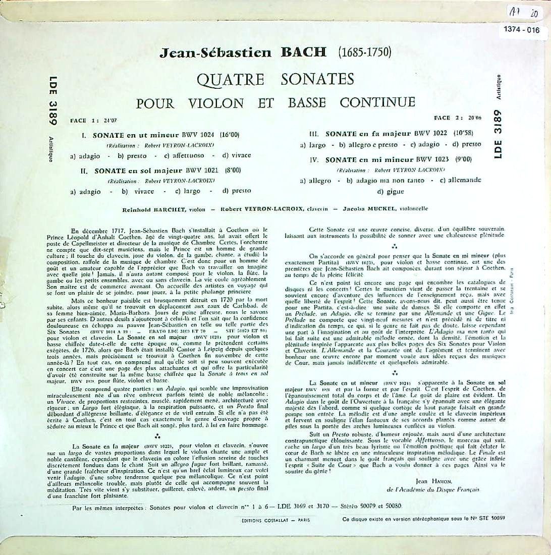 商品コード:1374-016[ERATO] R.バルヒェット(vn)/ バッハ:Vnと通奏低音のソナタB.1021~1024(4曲)